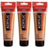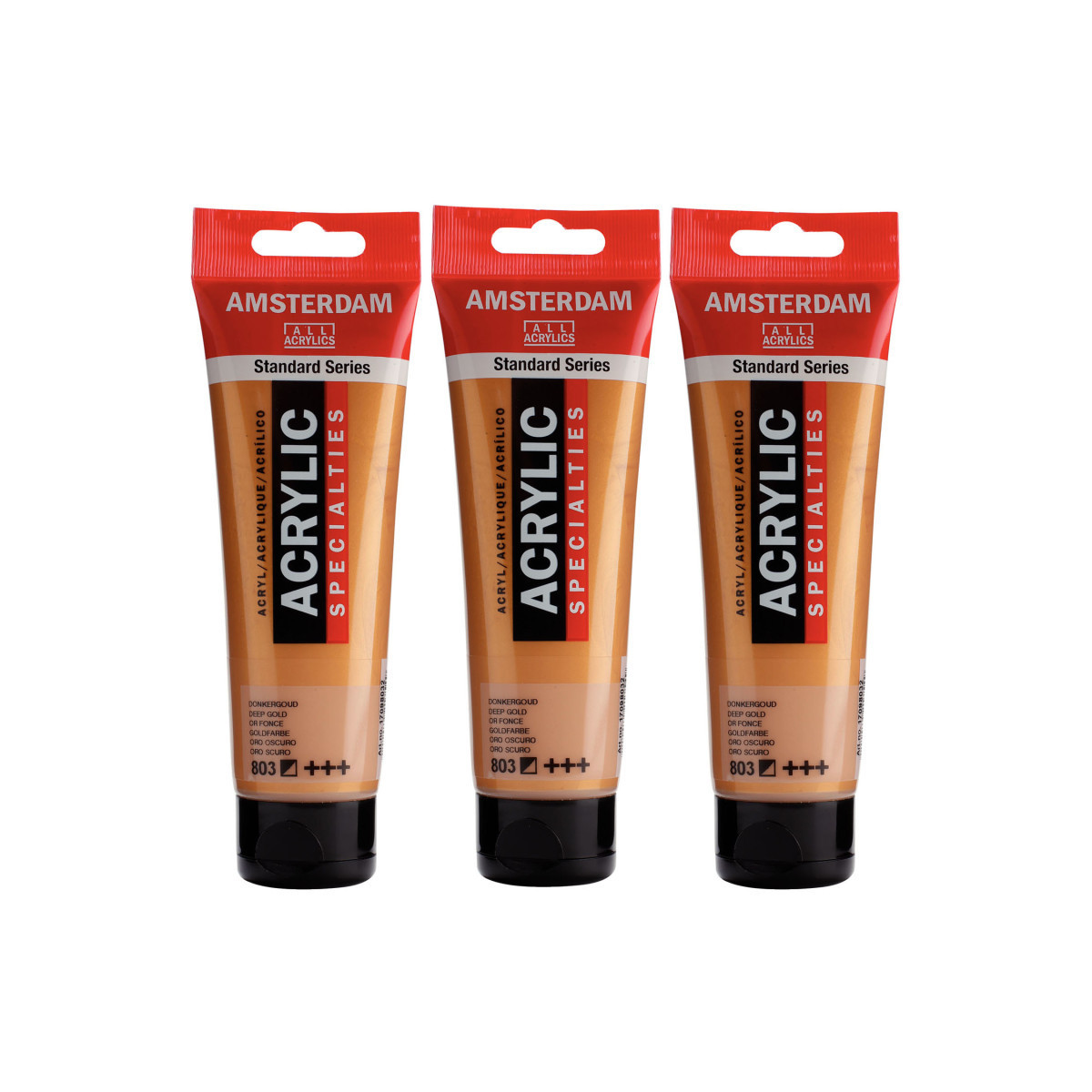 Amsterdam Standard Series acrylic paint in Deep Gold (803) is a semi-opaque color with an excellent lightfastness. Our Standard Series offers you the broadest range of remarkably vibrant acrylic colors. This versatile paint is easy to work with and offers a smooth application. Use the paint straight from the tube or thinned with a little bit of water or one of our acrylic mediums. Medium viscosity paint for visible brush strokes, texture and smooth coverage with a satin finish. Made with high-quality, lightfast pigments. Formulated with 100% acrylic resin binder, resulting in an exceptionally durable and flexible paint film with a uniform degree of gloss. Odorless, water-based formula that becomes waterproof and permanent when dry. Extensive range of 102 colors available in 20ml and 120ml tubes, of which up to 90 colors are also available in larger sizes. The range of colors includes both traditional and modern colors such as reflex and metallic variants. Adheres to virtually any slightly porous surface, including canvas, paper, cardboard, wood, stone and cement. Proudly crafted in the Netherlands. Sold as a pack of 3.