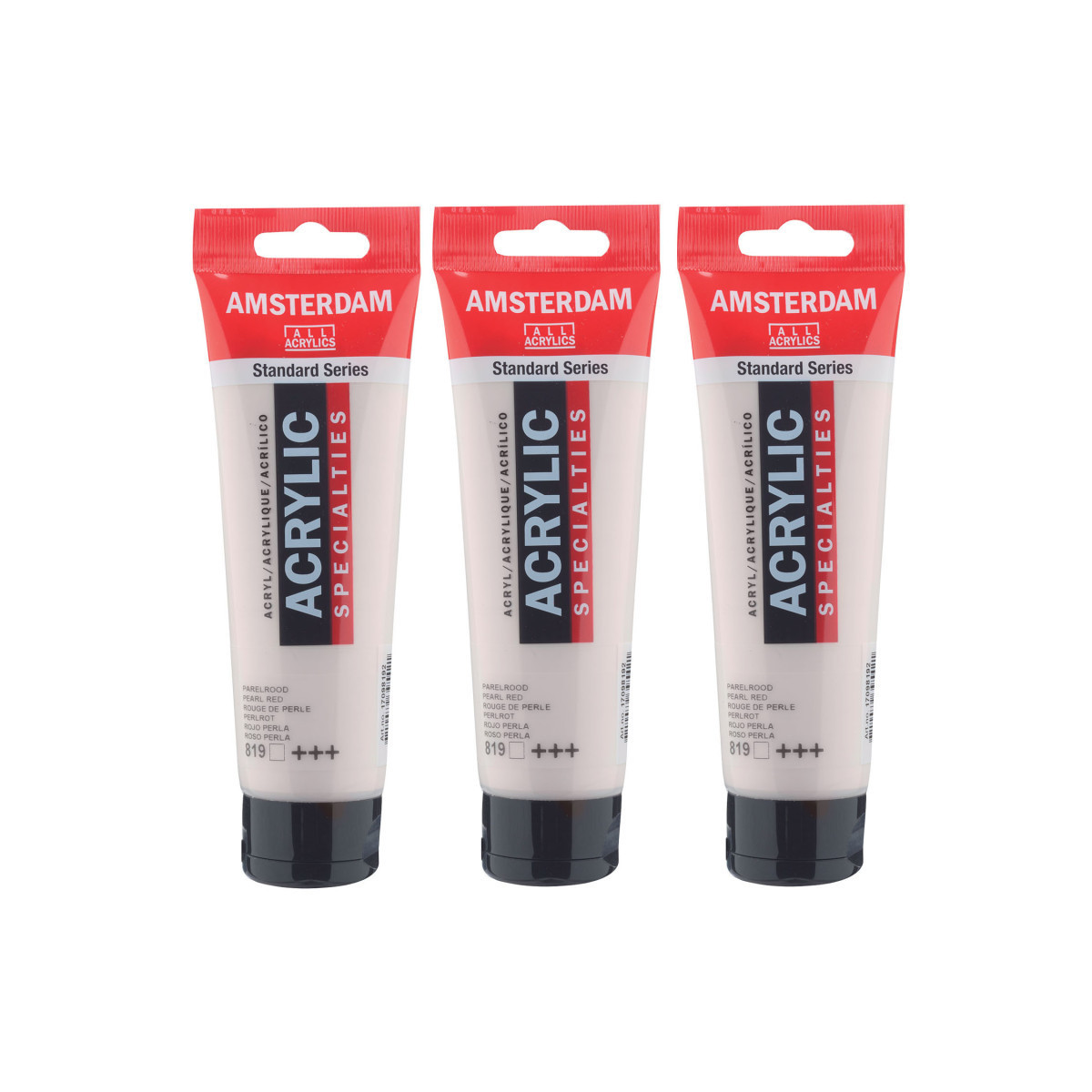 Amsterdam Standard Series acrylic paint in Pearl Red (819) is a transparent color with an excellent lightfastness. Our Standard Series offers you the broadest range of remarkably vibrant acrylic colors. This versatile paint is easy to work with and offers a smooth application. Use the paint straight from the tube or thinned with a little bit of water or one of our acrylic mediums. Medium viscosity paint for visible brush strokes, texture and smooth coverage with a satin finish. Made with high-quality, lightfast pigments. Formulated with 100% acrylic resin binder, resulting in an exceptionally durable and flexible paint film with a uniform degree of gloss. Odorless, water-based formula that becomes waterproof and permanent when dry. Extensive range of 102 colors available in 20ml and 120ml tubes, of which up to 90 colors are also available in larger sizes. The range of colors includes both traditional and modern colors such as reflex and metallic variants. Adheres to virtually any slightly porous surface, including canvas, paper, cardboard, wood, stone and cement. Proudly crafted in the Netherlands. Sold as a pack of 3.