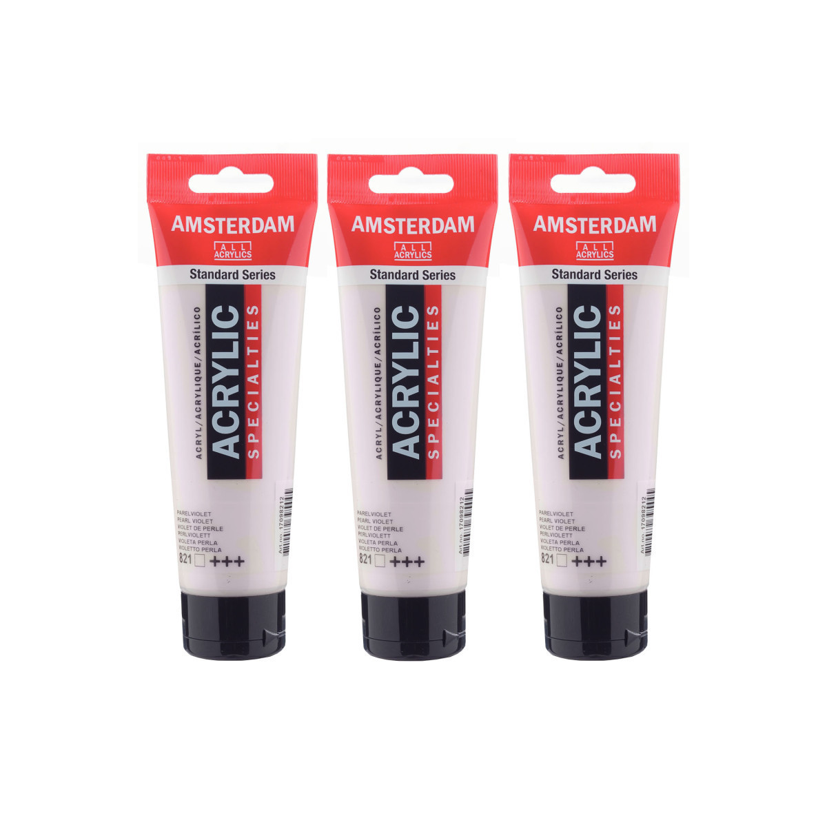 Amsterdam Standard Series acrylic paint in Pearl Violet (821) is a transparent color with an excellent lightfastness. Our Standard Series offers you the broadest range of remarkably vibrant acrylic colors. This versatile paint is easy to work with and offers a smooth application. Use the paint straight from the tube or thinned with a little bit of water or one of our acrylic mediums. Medium viscosity paint for visible brush strokes, texture and smooth coverage with a satin finish. Made with high-quality, lightfast pigments. Formulated with 100% acrylic resin binder, resulting in an exceptionally durable and flexible paint film with a uniform degree of gloss. Odorless, water-based formula that becomes waterproof and permanent when dry. Extensive range of 102 colors available in 20ml and 120ml tubes, of which up to 90 colors are also available in larger sizes. The range of colors includes both traditional and modern colors such as reflex and metallic variants. Adheres to virtually any slightly porous surface, including canvas, paper, cardboard, wood, stone and cement. Proudly crafted in the Netherlands. Sold as a pack of 3.