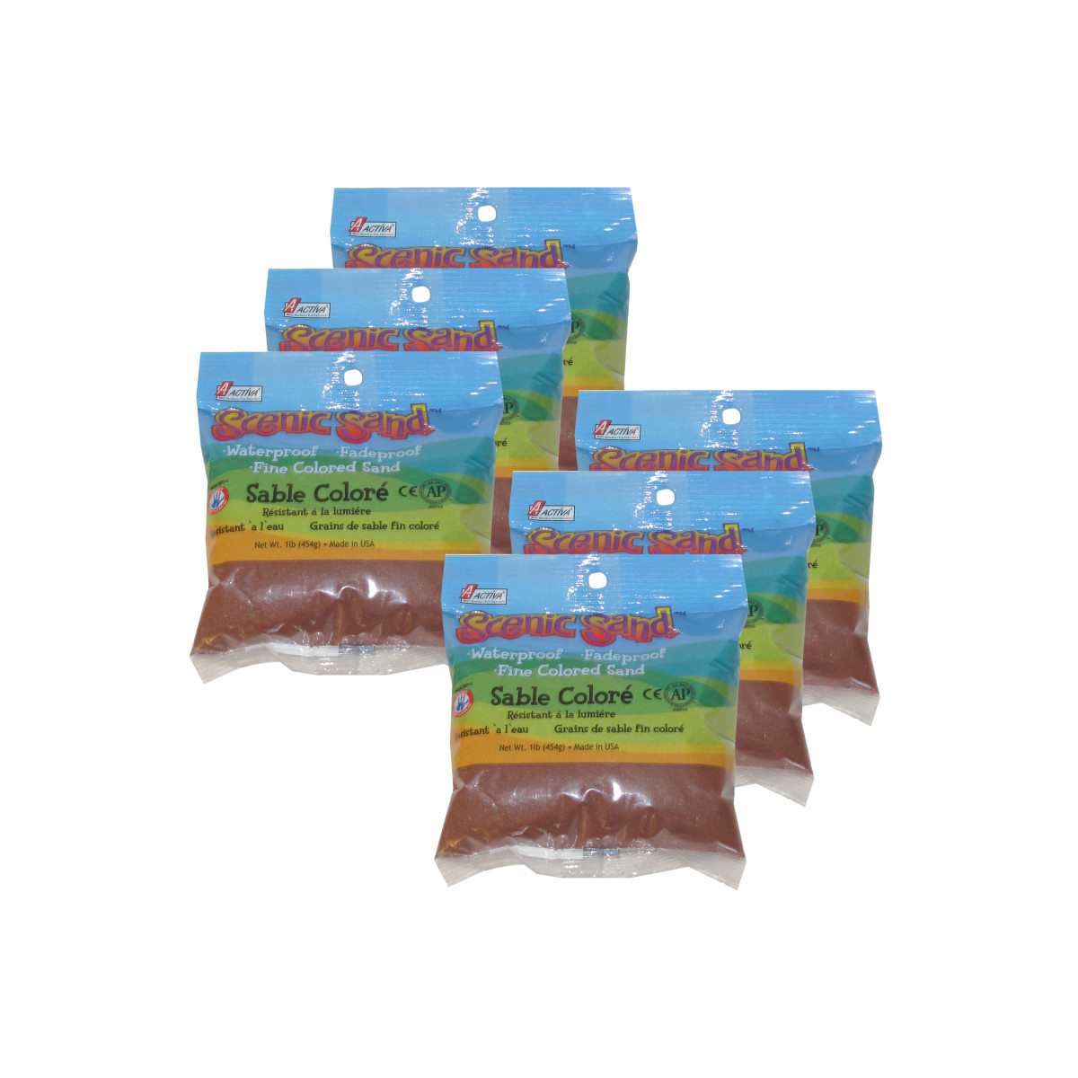 ACTÍVA Scenic Sand™ Craft Colored Sand, Dark Brown, 1 lb (454 g) Bag, Pack of 6