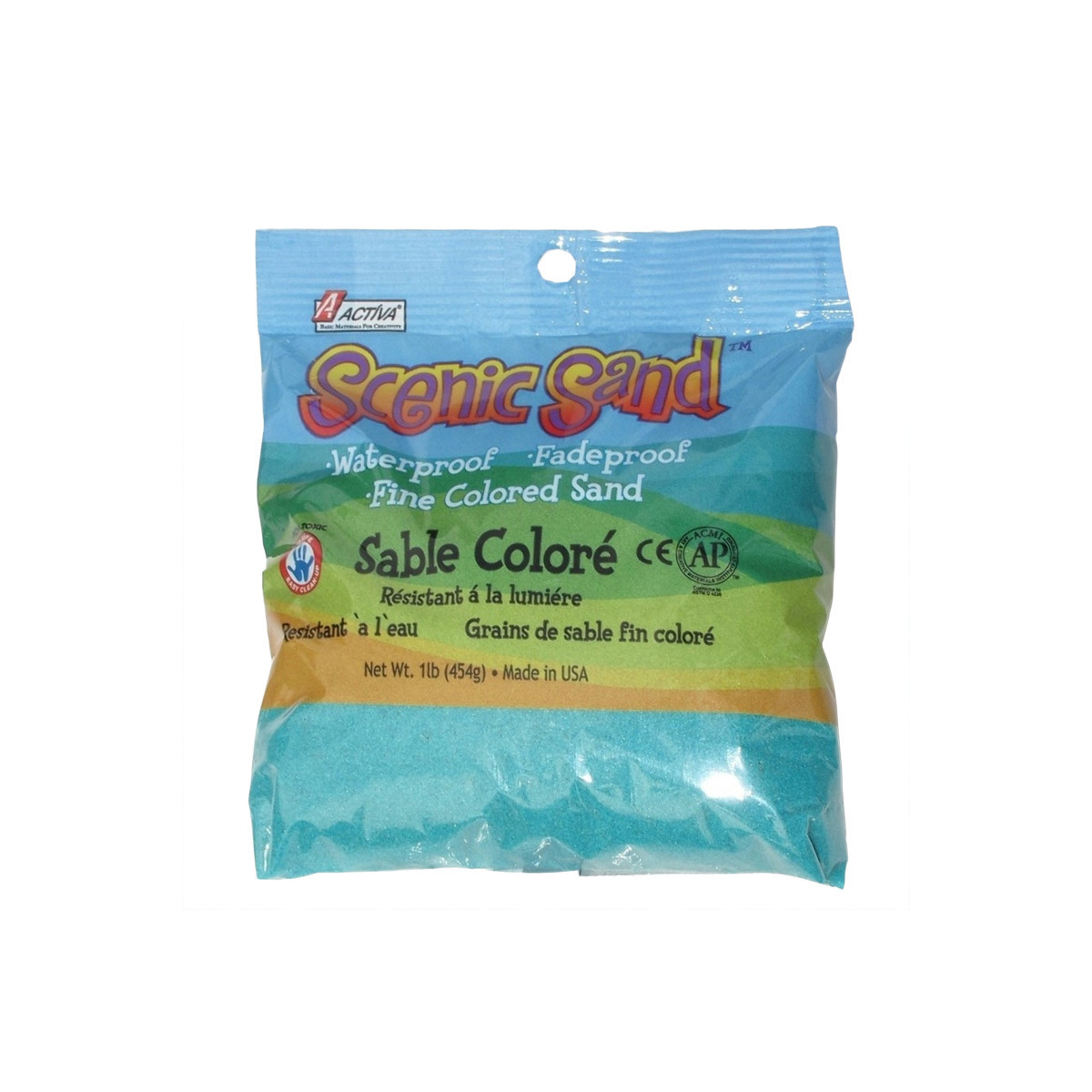 ACTÍVA's fine-grain Scenic Sand can be used to create colorful sand paintings, sand mosaics, and sand art projects for home decor and gifting. This colored sand can add an extra decorative dimension to paper mache, jewelry, baskets, wood cut-outs, boxes, plaques, and is also perfect for use as wedding unity sand. Bring brightness into your sand art and creations with Scenic Sand's Turquoise color. This 1lb container allows for up to multiple small projects.
