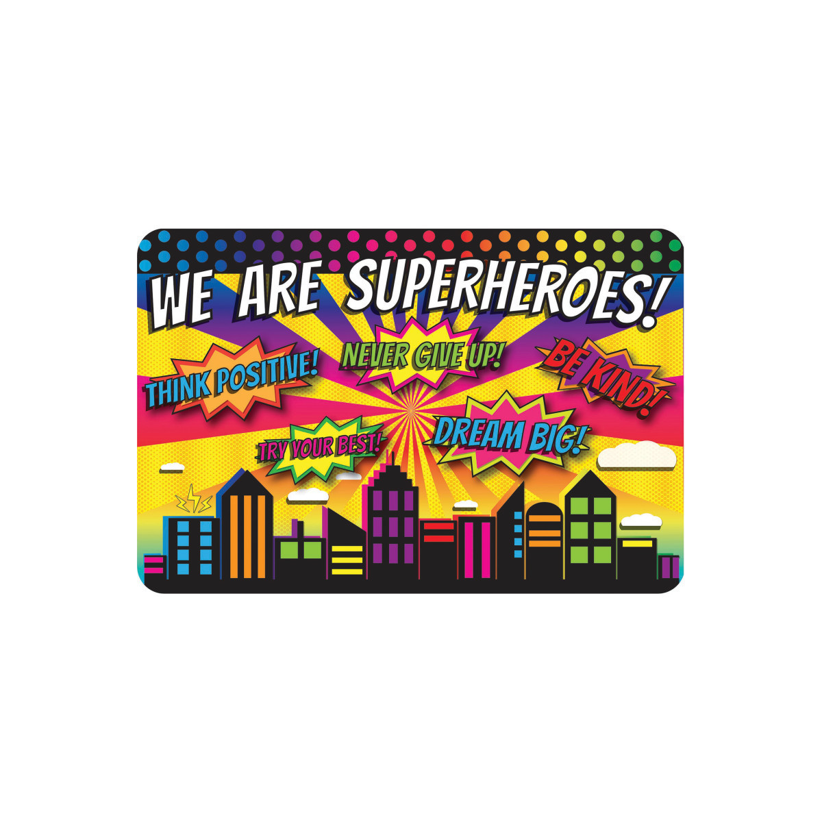 The Original Fun Mat® Computer Mouse Pad is a simple way to add comfort, personality, and encouragement to any workspace. Sized at 11.75 × 8 inches, this mouse pad provides ample room for smooth, precise mouse movement while keeping desks organized and visually inviting. Featuring a Superheroes, Positivity design, it brings a positive message and thoughtful style to offices, classrooms, and home workspaces.