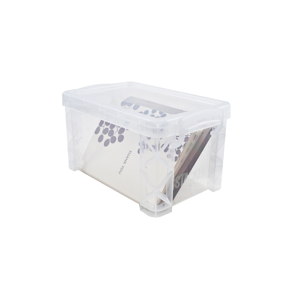 As part of the renowned Super Stacker® family, the Super Stacker® 3x5 in box is engineered to meet your storage needs at the office, school, or home. With a locking lid ensuring the security of your contents and a stackable design that saves valuable space, staying organized has never been easier. Stackable plastic boxes are perfect for storing index cards. Boxes are designed to stack on top of each other so you can save space while staying organized. Handles lock the top in place for a secure hold. These versatile boxes are also great for storing art/craft supplies, recipe cards or office/school supplies.