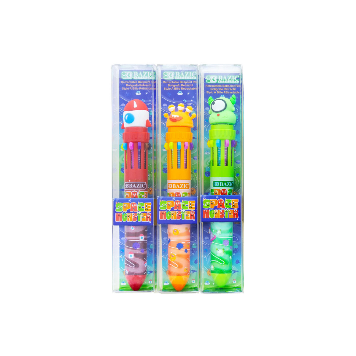 Unleash your imagination with these fun and functional Space Monster Series 10-Color Pens! Each pen is packed with 10 vibrant and unique ink colors, perfect for color-coding, decorating notes, or adding personality to your drawings and crafts. The retractable design makes switching colors effortless—just click to change, no need to juggle multiple pens or worry about losing caps. With a bold 1.0mm tip, your writing and artwork will stand out with strong, clear lines. Enjoy a smooth, skip-free writing experience thanks to high-quality ink that glides easily on paper. Whether you're at school, work, or just being creative, these multi-color pens bring both fun and functionality to every task. Sold in assorted pen designs, no design choice. Sold as a pack of 3.