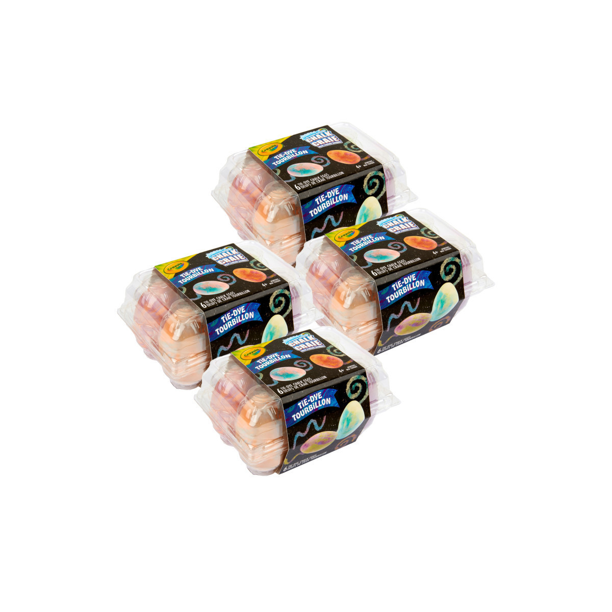 Crayola Tie-Dye Chalk Eggs are a must-have for kids who love to create and play outside. With 6 eggs in each pack, kids can enjoy hours of fun experimentation with different color combinations. Each egg contains 2 unique colors that create funky and one-of-a-kind color patterns with every use. Whether it's drawing hopscotch squares or creating sidewalk art, these tie-dye chalk eggs make it easy for kids to express their creativity while enjoying fresh air and sunshine. And the best part? They wash off easily from sidewalks and pavement, making clean up a breeze. It's a perfect gift for kids on holidays, birthdays or any occasion. So, get your hands on Crayola Tie-Dye Chalk Eggs and let your kids' imagination run wild! Sold as 4 packs, with 6 eggs per pack.