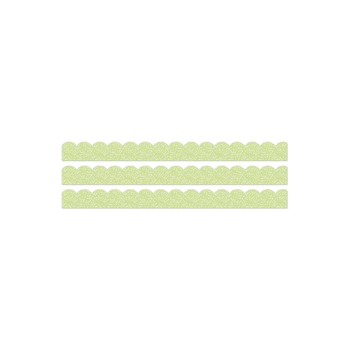 Add a pop of color to your classroom décor with Carson Dellosa's Crafty and Cool Green Polka Dots Bulletin Board Borders! The border bundle includes 13 strips of scalloped, green bulletin board border with a white polka dot design on each border trim. Each strip of border measures 3' x 3" for a total of 39ft to dress up lockers, cubbies, bulletin board, cork board, and white board displays with ease. The classroom border is printed on thick but flexible bulletin board paper that you can cut and layer to add dimension to any display. Sold as 3 packs, with 39 ft per pack.
