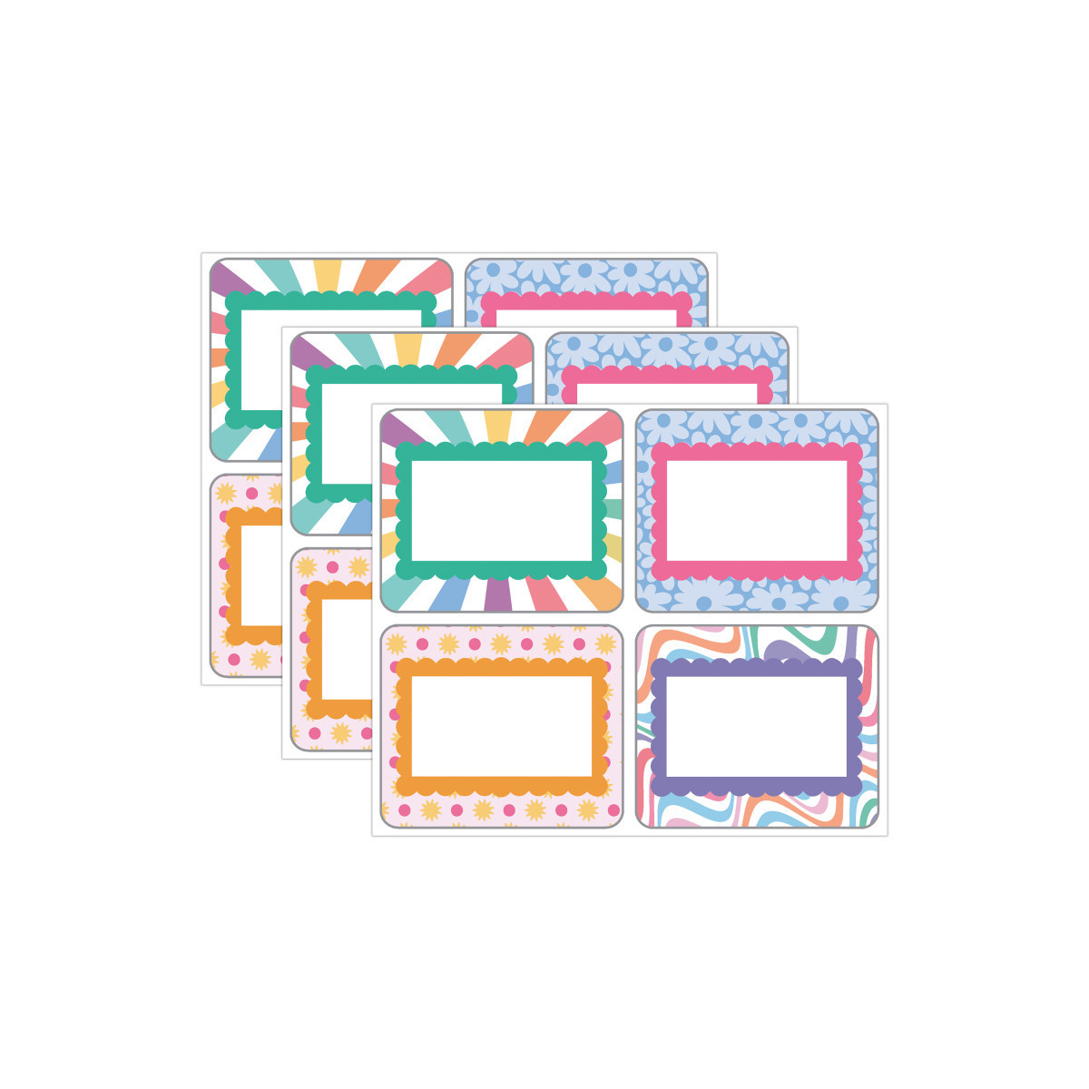 Add some retro vibes to your back to school teacher supplies and classroom décor with Retro Remix Name Tags! The name tag set includes 40 self-adhesive name stickers that feature 4 colorful, groovy designs and 10 name tags per design. Each name tag measures 3" x 2.5"—the perfect size name tags for classroom cubbies, student name tags for desks, lockers, and tags for labeling school supplies and daycare essentials. Use the name tags as name labels for field trips, back to school introductions with students, or back to school nights and parent teacher conferences. Retro Remix, designed by Stephanie and Loreal of @HappilyEverElementary, partnered with Carson Dellosa to bring some fun, retro vibes to your learning environment. Sold as 3 packs, with 40 per pack.