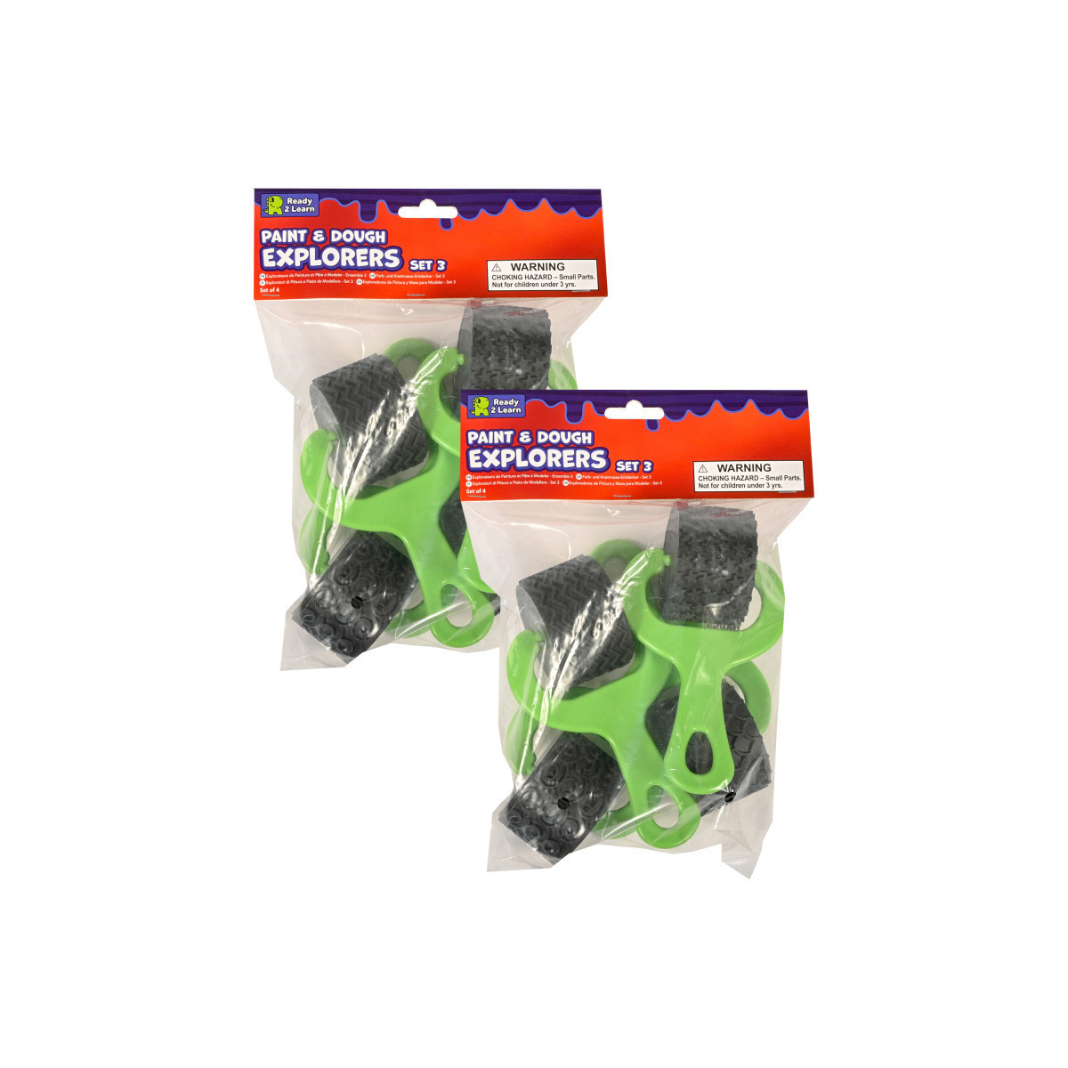 This set includes 4 heavy-duty, textured rollers, each with a different raised pattern. Add exciting patterns to paint, dough and more. With chunky handles, these rollers are perfect for little hands. Develop fine motor skills like hand-eye coordination. These tools are made with thick plastic handles and durable rubber rollers. Easily wash them clean with warm water. They’re designed to last for years of use. Each tool features a hole in the plastic handle for hanging. For ages 3+. Size: 6"L x 3.3"W. Roller size: 1.6"W. Sold as 2 sets.