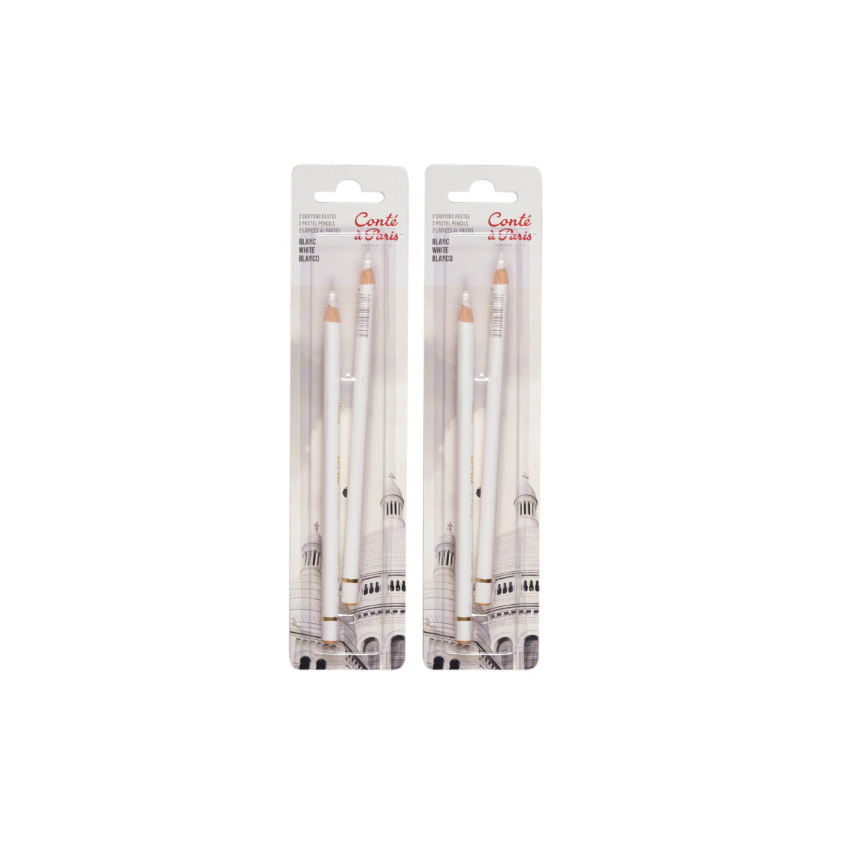This set of two (2) high quality Conté à Paris pastel pencils is ideal for drawing, creating a base, contrast, lightening or blending colors. They are a perfect companion to soft pastels, allowing for more versatile fine details with a velvety finish. Conté pastel pencils work well on a wide range of papers. The white pencil is an essential asset to have in your pencil case because it is multi-functional! It is used for The slightly hard and highly pigmented lead allows you to obtain details requiring precision and finesse in small and medium formats. Its velvety effect is appreciated in the realization of the drawing as well as in the rendering. Sold as 2 packs with 2 per pack.