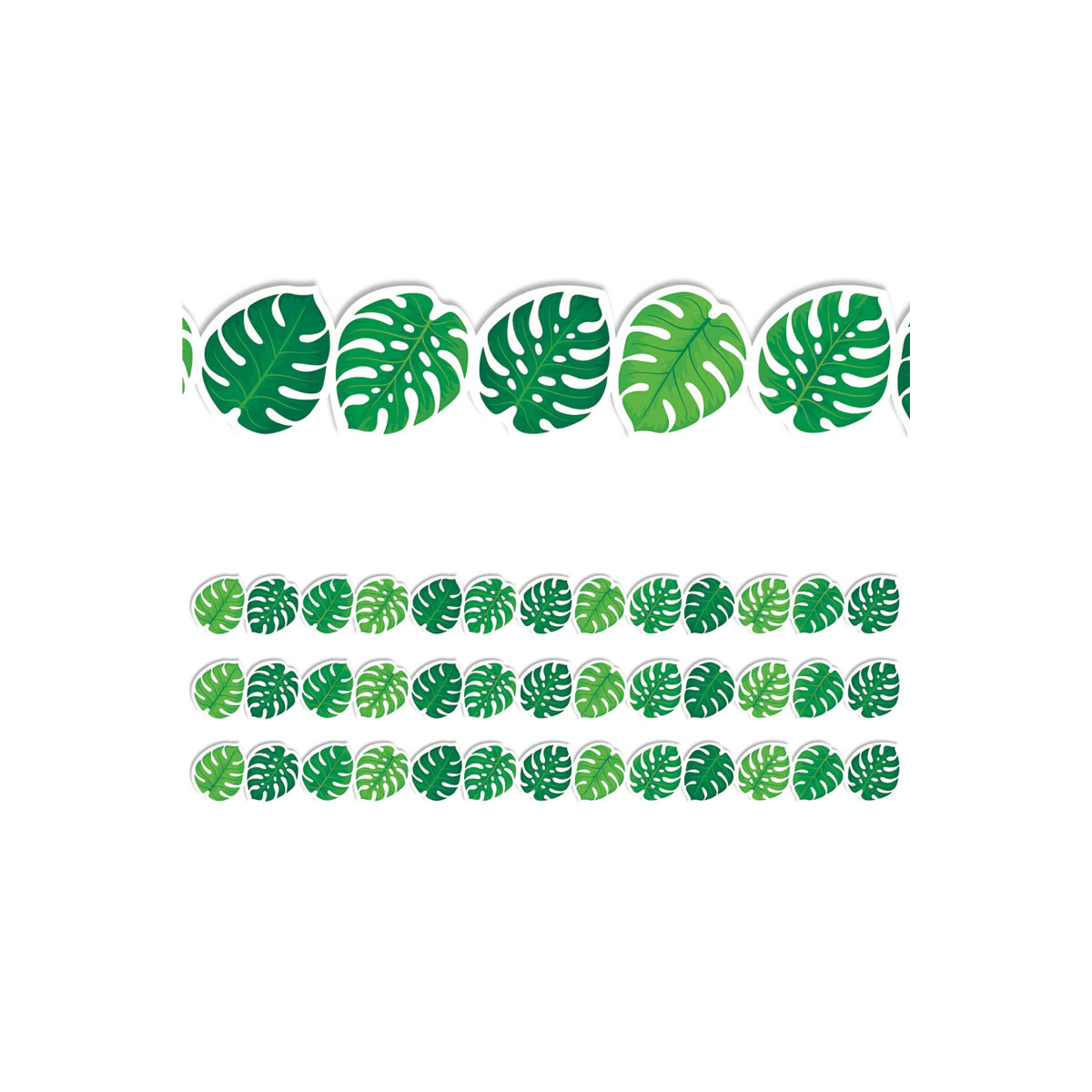 This Palm Paradise Monstera Leaves EZ Border features a mix of colorful green leaves in a playful die-cut. These vibrant leaves will complement a wide variety of bulletin board displays and classroom decoration themes, including those related to science, plants, nature, jungle, zoo and tropical locations. Use this EZ border to trim an inspirational "Unbe-leaf-able Work" or "Be-leaf in yourself" bulletin board. These EZ borders come in smaller strips, which are easier to manage and store. Each package comes with enough borders to complete 2 full bulletin boards. Sold as 3 packs. Each pack includes 24 strips measuring 3" x 24" for a total of 48 feet.