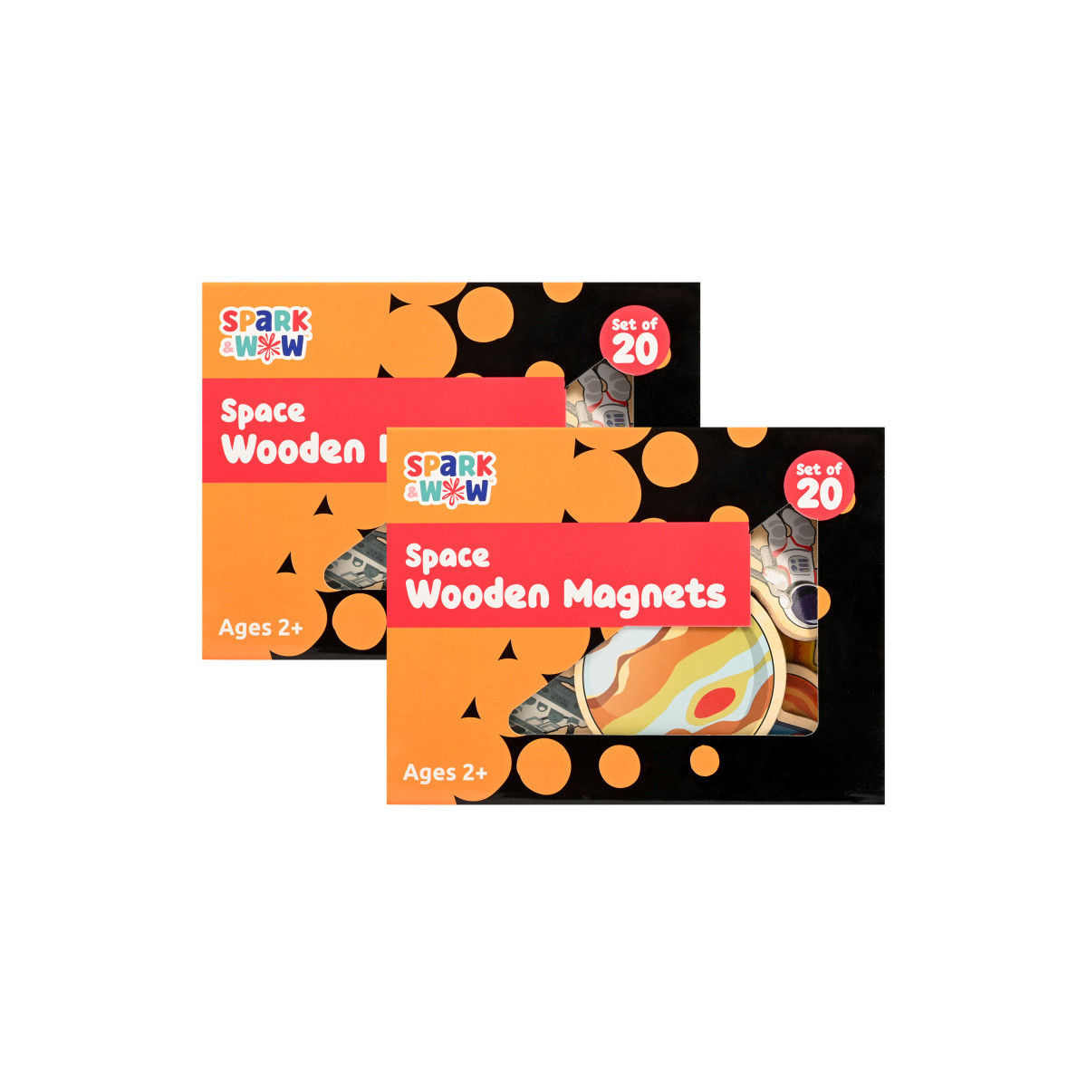 20 DIFFERENT SPACE SHAPES -- This wooden magnet set features 20 colorful magnets in different space-themed shapes. Decorate and play with rockets, planets, astronauts and more!
