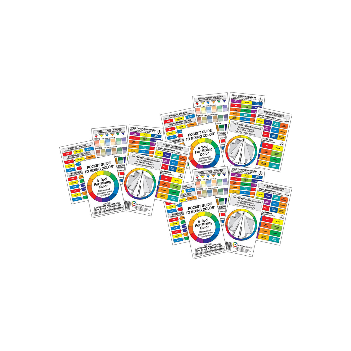 Master color relationships anywhere with the Artist’s Color Wheel Pocket Mixing Guide. Compact yet comprehensive, this portable reference tool helps artists, students, and designers understand how colors interact. It illustrates primary, secondary, and tertiary hues along with complementary, split-complementary, and analogous relationships for precise mixing and harmonious compositions. The double-sided design includes a grayscale value finder and tints, tones, and shades for improved color balance. A folding version of our popular Color Wheel. it is durable and easy to use, and fits conveniently into sketchbooks, supply kits, or travel bags—perfect for plein air painting or classroom instruction. A reliable, educational tool for achieving accurate color combinations in painting, drawing, or digital design work. Sold as a pack of 3.