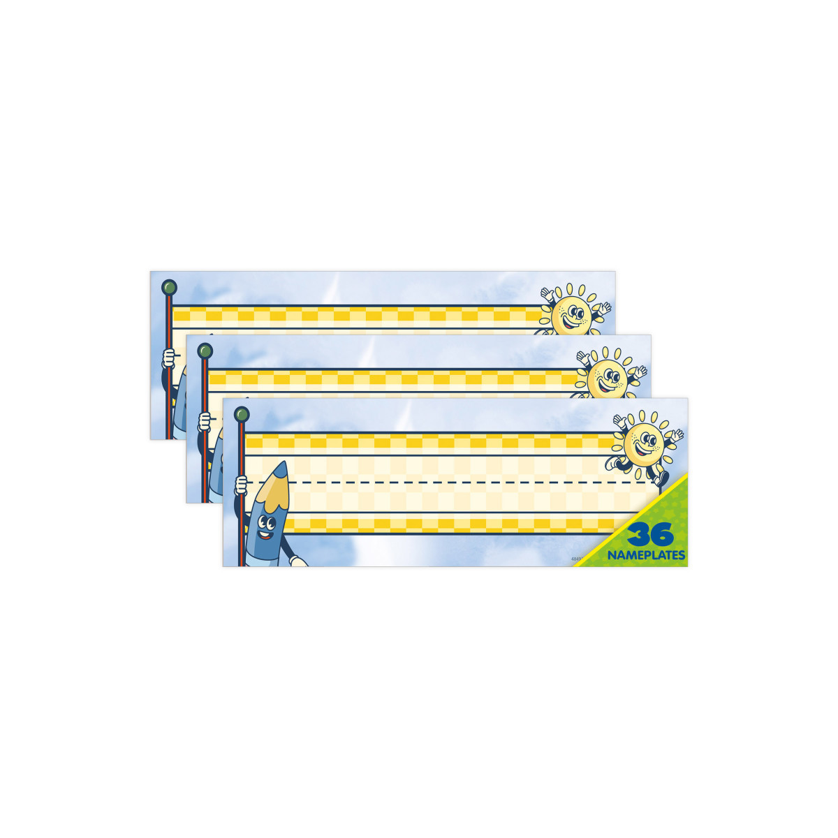Showcase more than your students name! Eureka Tented Name Plates provide a helpful visual reference with plenty of space for first and last names that can be seen from both sides. Individual name plate measures 9-5/8" x 6-1/2". Sold as 3 packs. Each pack includes 36 name plates.
