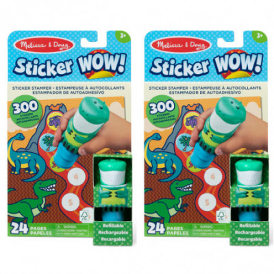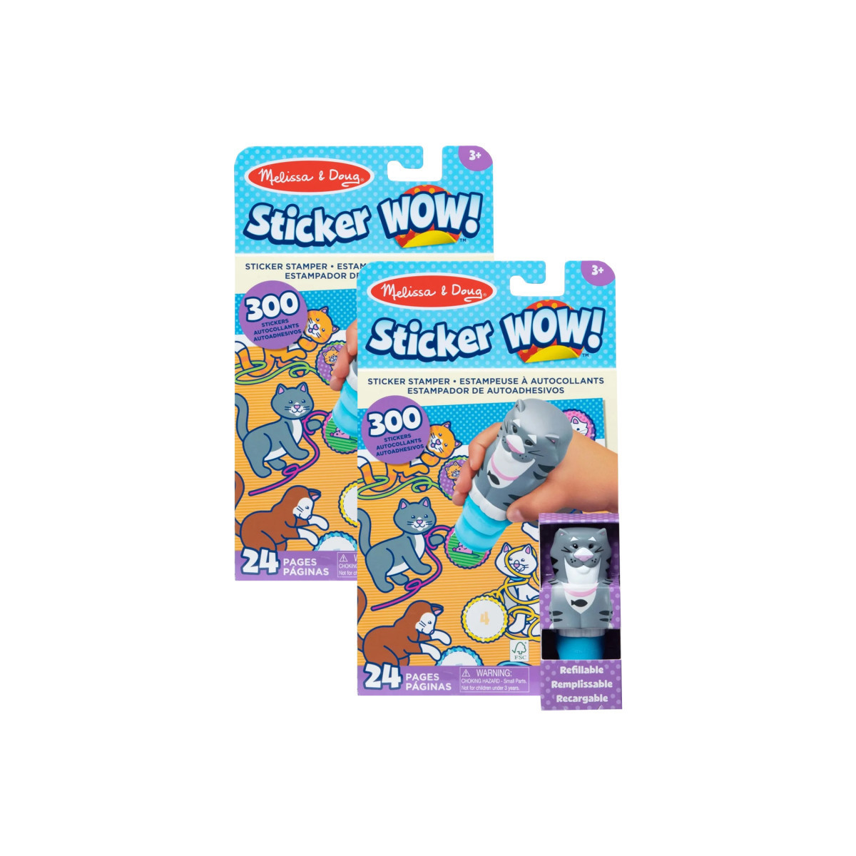 Melissa & Doug Sticker WOW!™ is a whole new way to play with stickers! Let the adorable, collectible Tuna the Cat stamp, stamp, stamp its way through 24 pages of fun-filled, pets-themed counting, matching, and search-and-find activities. The refillable sticker stamper comes pre-loaded with a sticker stack of 300 assorted stickers – with 100 unique designs in every stack, each sticker is a surprise! Themed refill packs are sold separately and are compatible with any Sticker WOW!™ sticker stamper. Stickers are not reusable, but are easy to remove if necessary. Fill in the activity pages and use for creative art projects, such as bookmarks, posters, cards, and more. Easy-to-remove stickers and the convenient on-the-go format with built-in sticker stamper storage makes Sticker WOW!™ (patent pending) a great mess-free travel activity. Sticker WOW!™ promotes fine motor skills, encourages creative play, and it's satisfying, fidget fun! Sold as 2 sets.