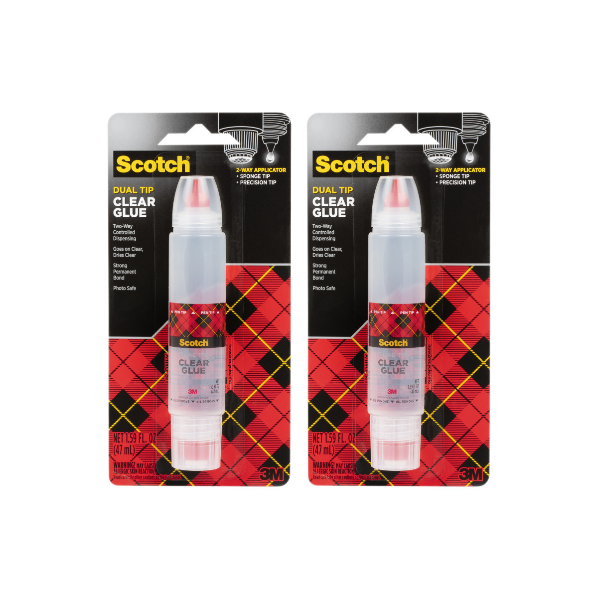 Scotch® Clear Glue with 2-Way Applicator is the go-to solution for all your creative and craft needs, offering unmatched precision and control. Featuring both a dauber for covering large areas and a fine-tip applicator for detailed work, this versatile glue is perfect for paper, foam core, poster boards, card stock, cardboard, and even most woods. The permanent adhesive dries clear for a polished finish and sets in just five minutes when applied in a thin, even coat. Ideal for school, home, or craft room use, it’s also photo safe and non-toxic—making it as safe as it is effective. Sold as a pack of 2.