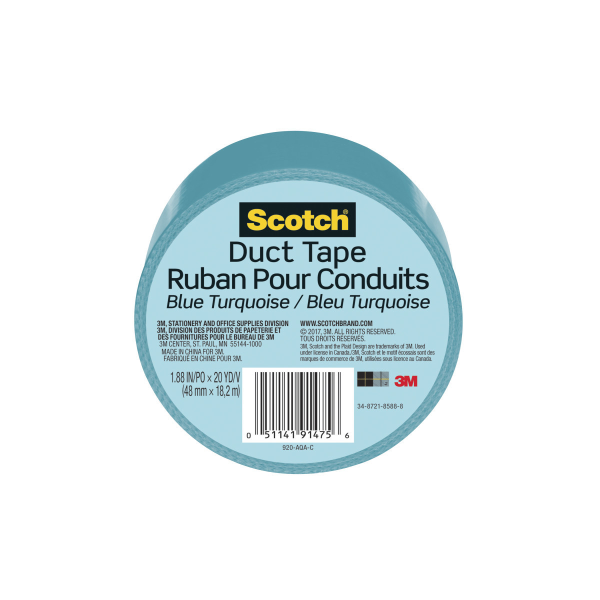 Scotch® Duct Tape for Artists, 1.88 in x 20 yd (48 mm x 18.2 m), Blue Turquoise