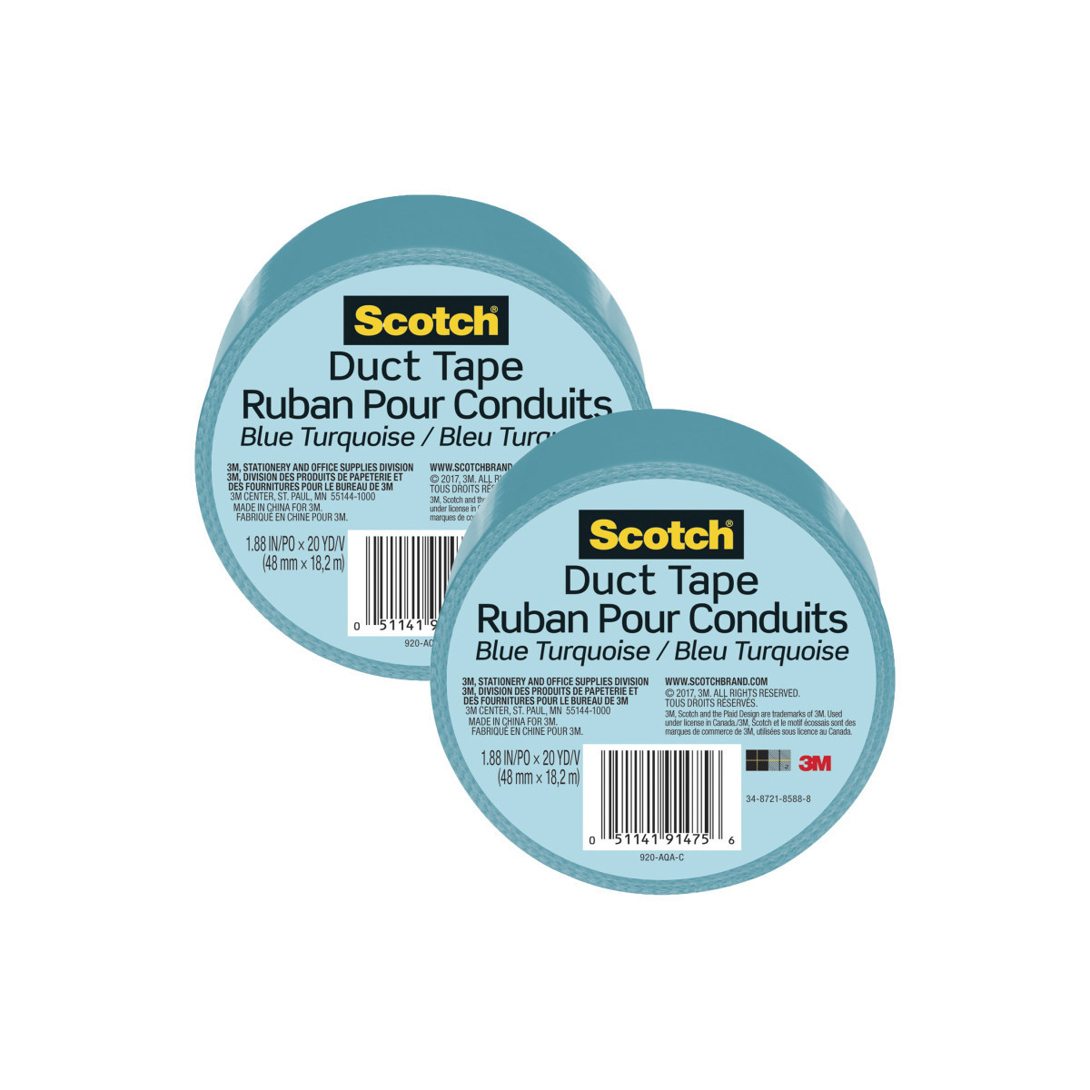 Scotch® Duct Tape for Artists, 1.88 in x 20 yd (48 mm x 18.2 m), Blue Turquoise, Pack of 2