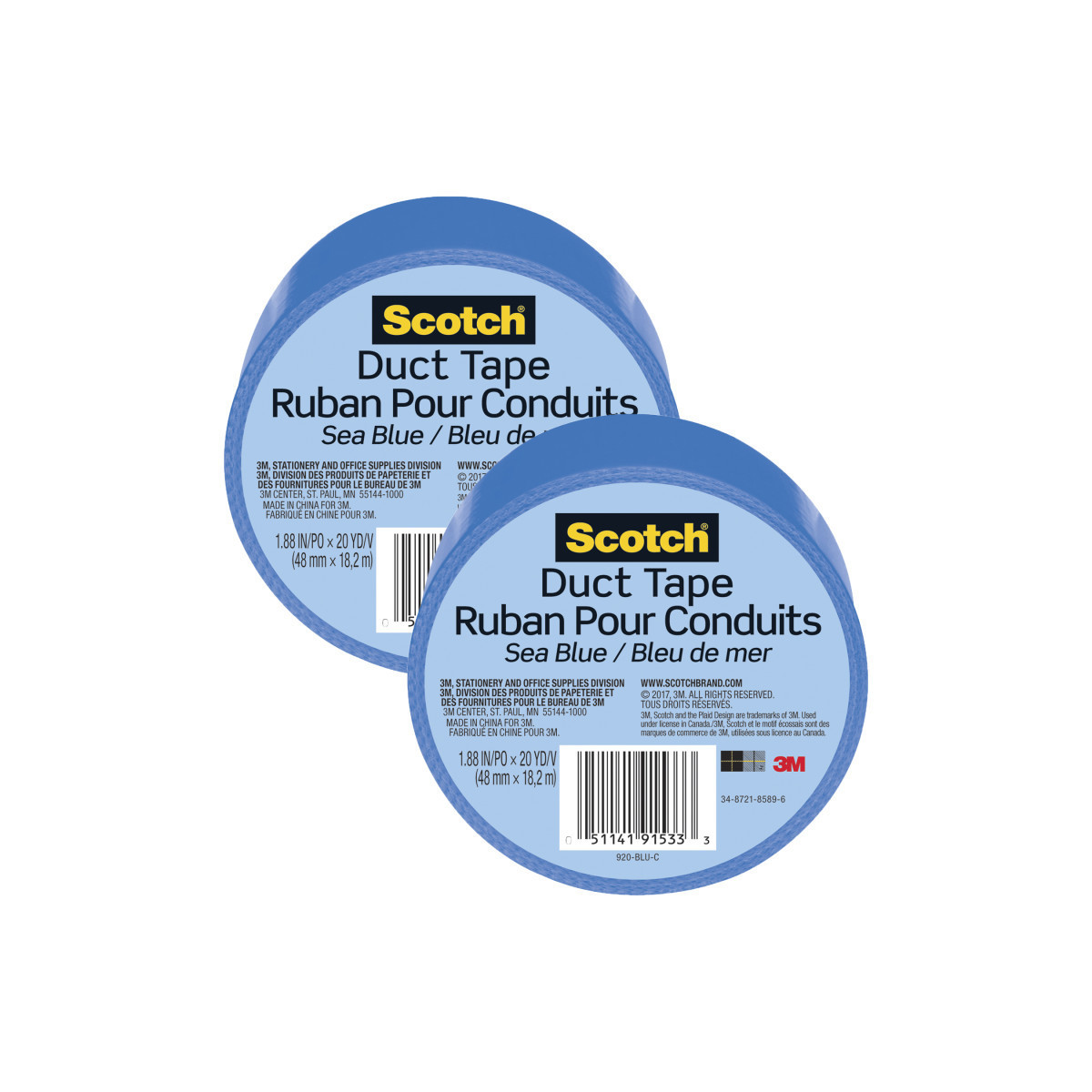 Scotch® Duct Tape for Artists, 1.88 in x 20 yd (48 mm x 18.2 m), Sea Blue, Pack of 2