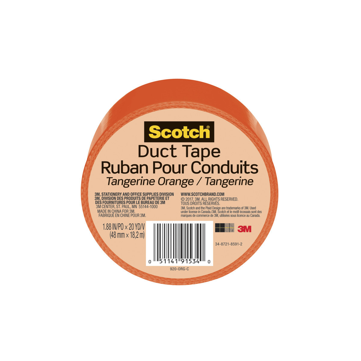 Scotch® Duct Tape for Artists, 1.88 in x 20 yd (48 mm x 18.2 m), Tangerine Orange