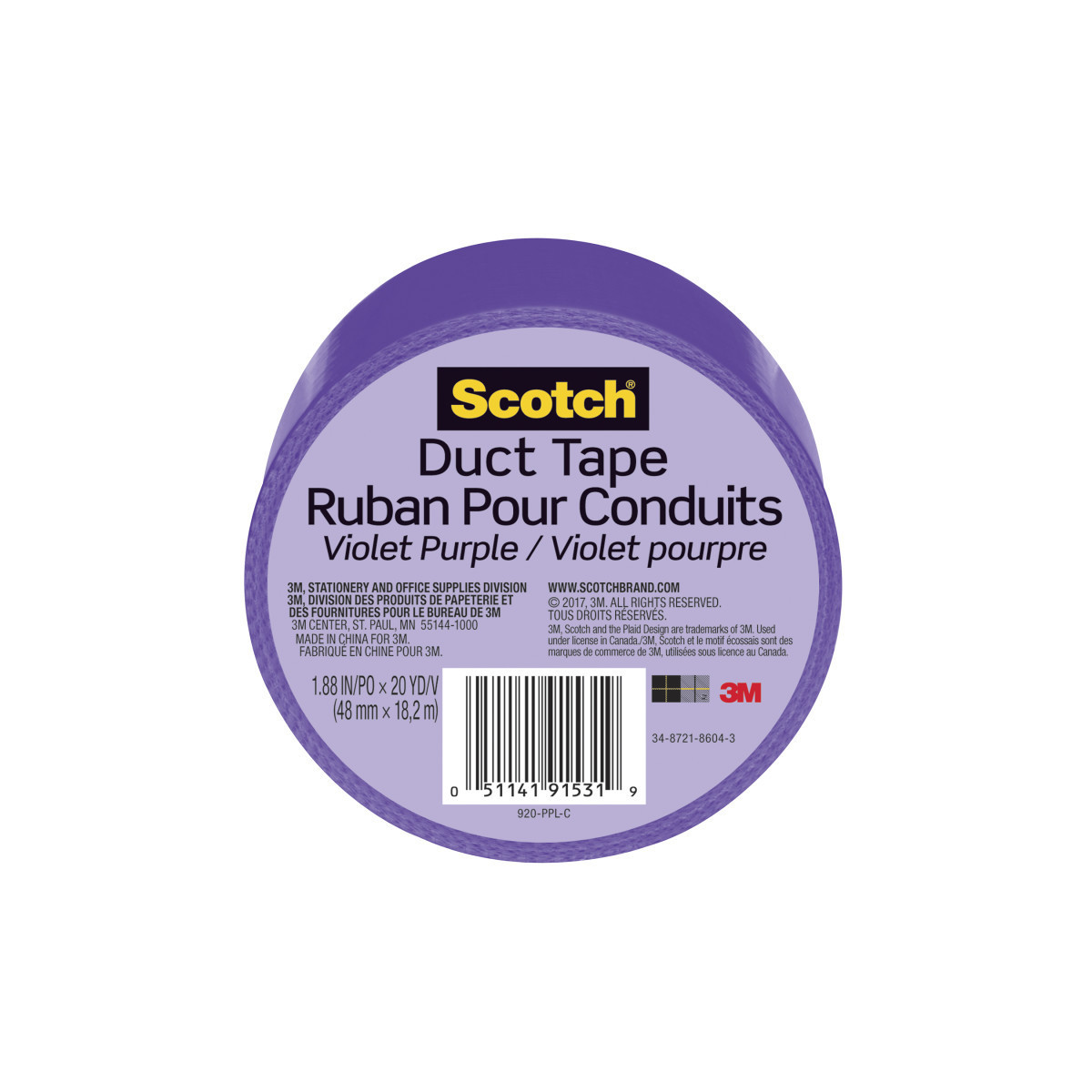 Scotch® Duct Tape for Artists, 1.88 in x 20 yd (48 mm x 18.2 m), Purple