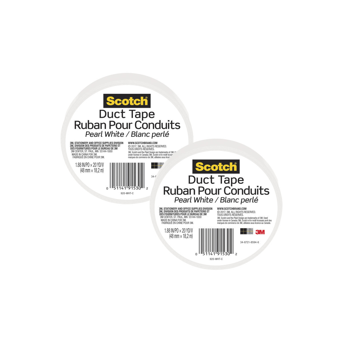 Scotch® Duct Tape for Artists, 1.88 in x 20 yd (48 mm x 18.2 m), White, Pack of 2