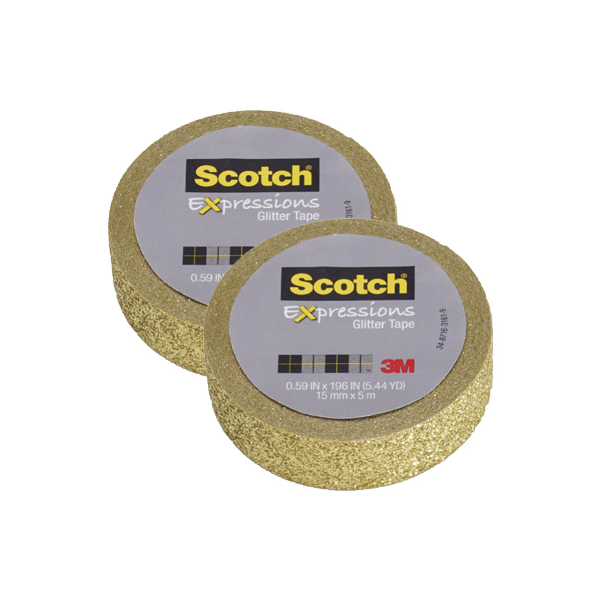 Scotch® Expressions Glitter Tape, .59" x 196", Gold Glitter, Pack of 2