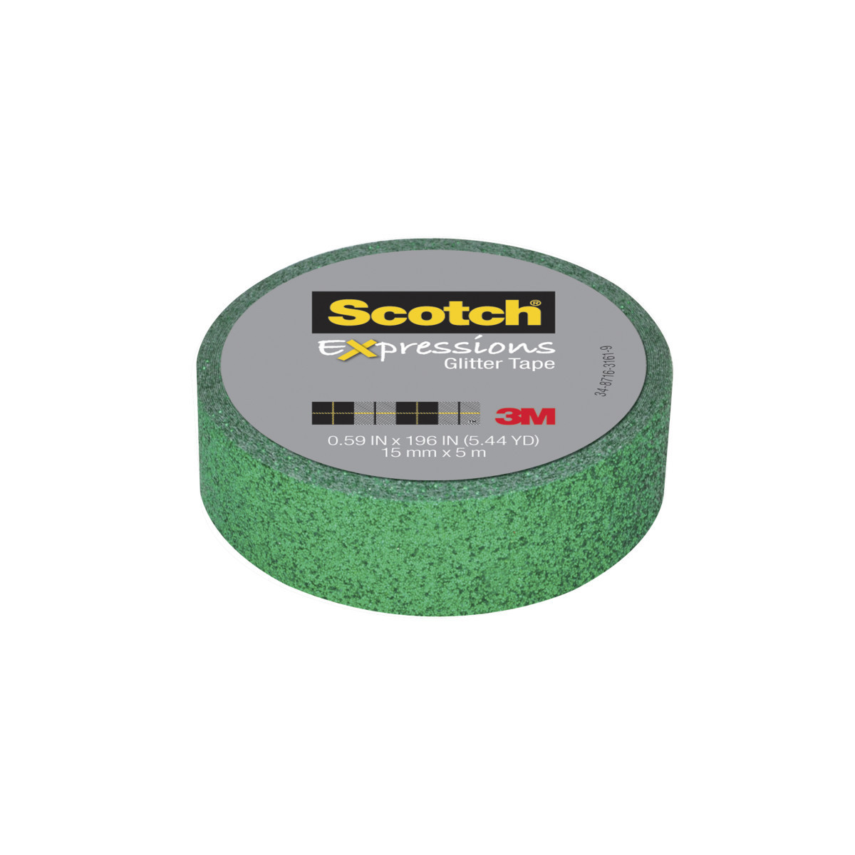 Scotch® Expressions Glitter Tape, .59" x 196", Dark Green Glitter