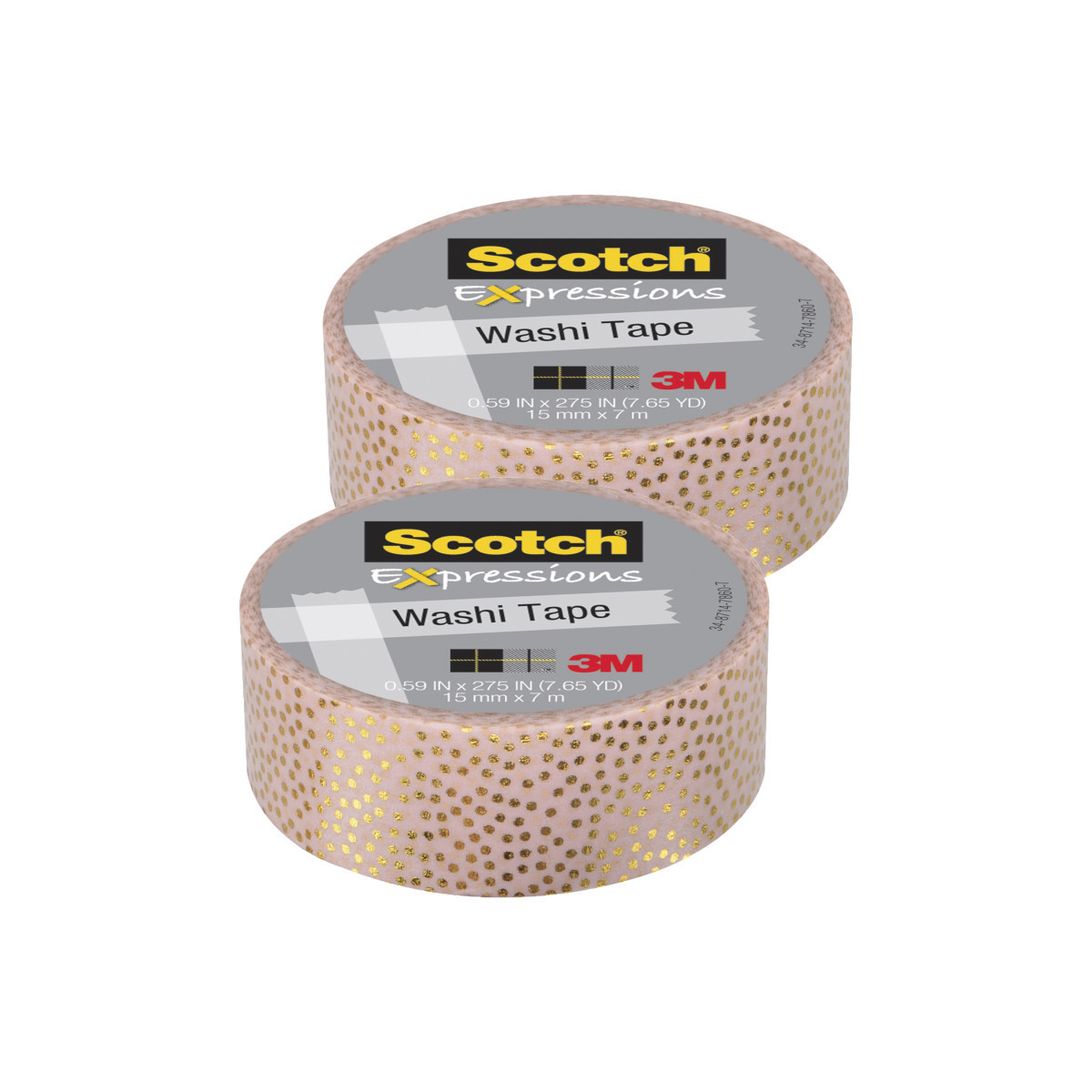Scotch® Expressions Washi Tape, .59" x 275", Speckled Gold Pastel Pink, Pack of 2