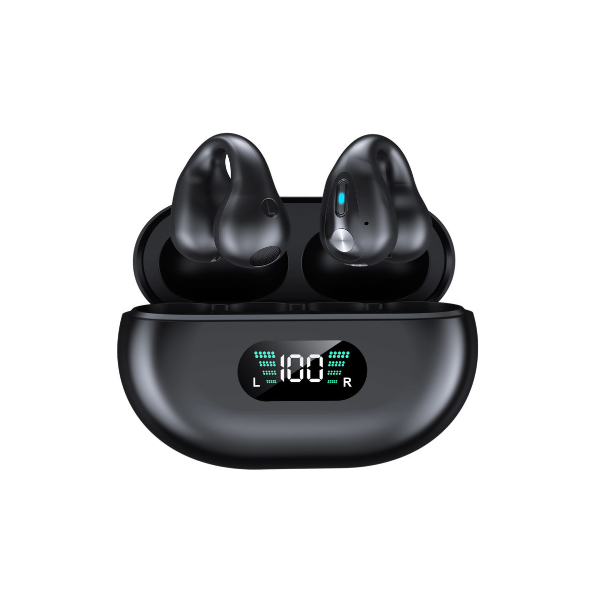 Experience next-level comfort and innovation with these Clip-On Wireless Earbuds, designed for a pain-free and secure listening experience. Unlike traditional in-ear headphones, these unique suspension-style earbuds clip gently onto your ears—no insertion needed—eliminating ear canal pressure, discomfort, and potential hearing damage. Perfect for running, workouts, and outdoor activities, the ergonomic ear hooks ensure a stable fit that won't slip, even during intense movement. Powered by advanced Bluetooth technology, these earbuds instantly auto-pair with your device for seamless connectivity and crystal-clear audio. Enjoy up to 18 hours of total playtime—5 hours on a single charge plus 2.5 extra recharges from the case, all easily monitored with the built-in digital display.