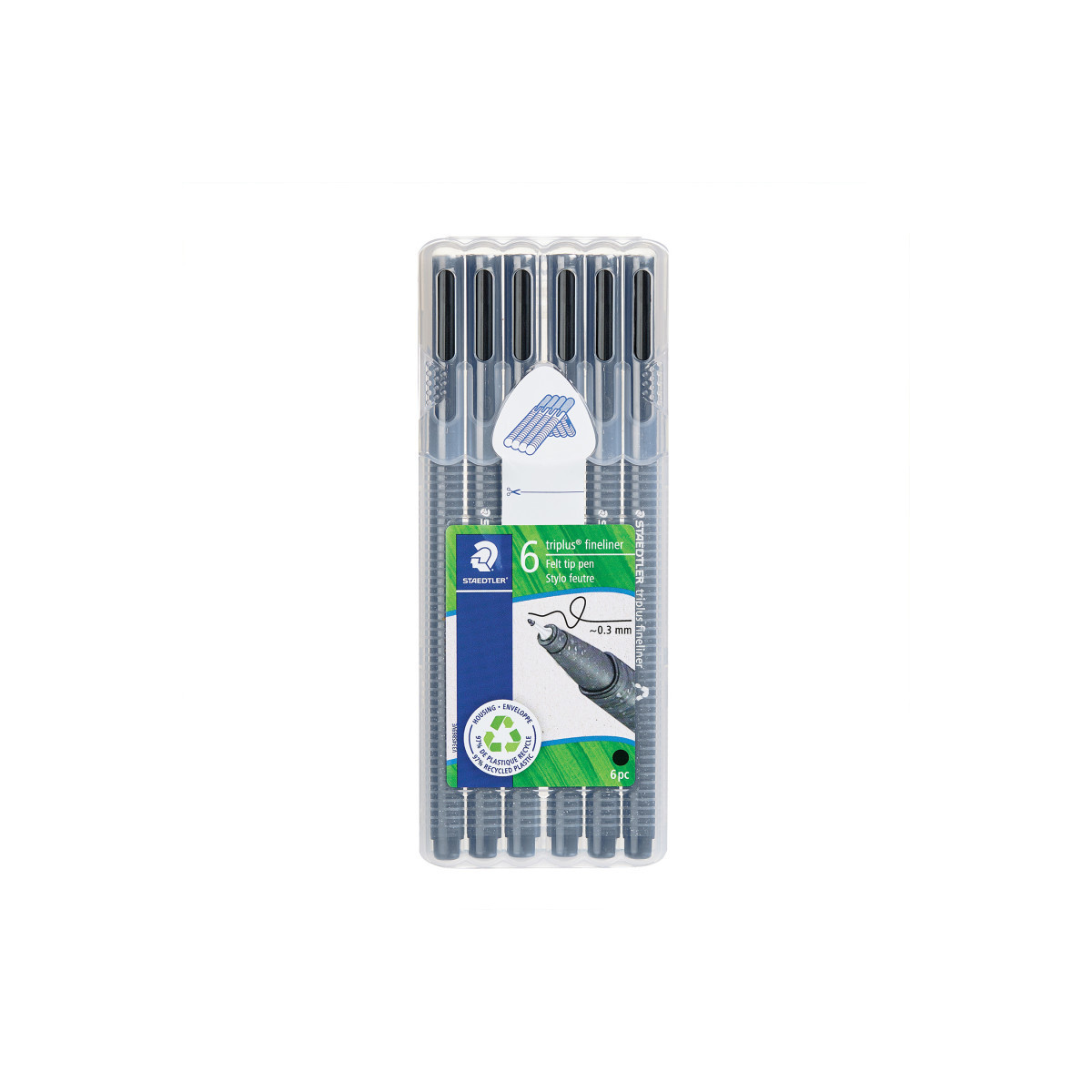 Staedtler's triplus fineliner is the perfect pen for writing, drawing, technical and superfine art applications. 6 fineliner pens for clean, precise lines and outlines. Got a journal? These needle point markers are wonderful journal pens. Dry-safe ink means even if the cap's been left off for days, it remains usable. You can just pick it up and carry on. Storage is built in - these fine line markers come in an innovative standing easel pen case for hands-free organization and storing.