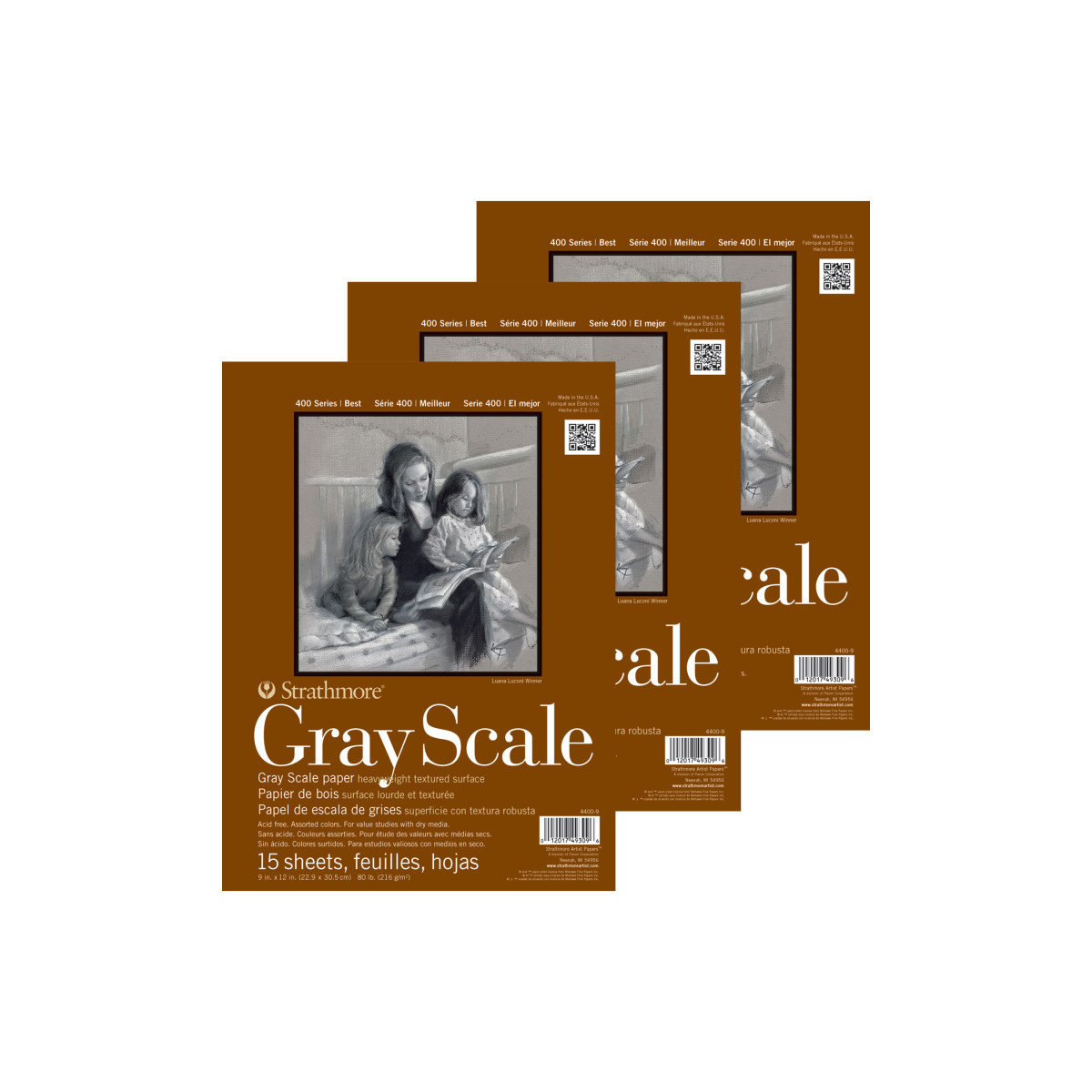 Introducing Strathmore 400 Series Gray Scale Paper-- a textured heavyweight paper in gray scale colors ranging from white to black, making it perfect for value studies using charcoal, pastel, chalk, and sketching sticks. Our 400 Series is often easily recognized thanks to the iconic brown cover used across our fine art pads. Known for its dependable quality & time-tested durability, this series is a staple in the hands of art students & professional artists, from their first art class in middle school, through to high school competitions, collegiate course work & on to a career as a professional artist, fashion designer, architect, illustrator, animator or engineer.