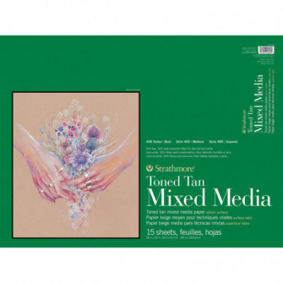 Introducing Strathmore art books—sophistically create anywhere with a range of books featuring our best-selling papers, including drawing, mixed media, sketch & drawing. Made with durable, rich brown, lightly-textured, matte covers, our books are available hardbound or soft cover, each with smith-sewn binding for lay-flat convenience, or with wire binding. Our expert level mixed media paper—this extra heavyweight, 3ply cotton surface is internally sized for wet media and has a durable vellum finish designed to accept both wet & dry media, providing the ultimate surface for mixed media. Withstands multiple layers of watercolor, gouache, acrylic, graphite, pen & ink, colored pencil, marker, pastel & collage.