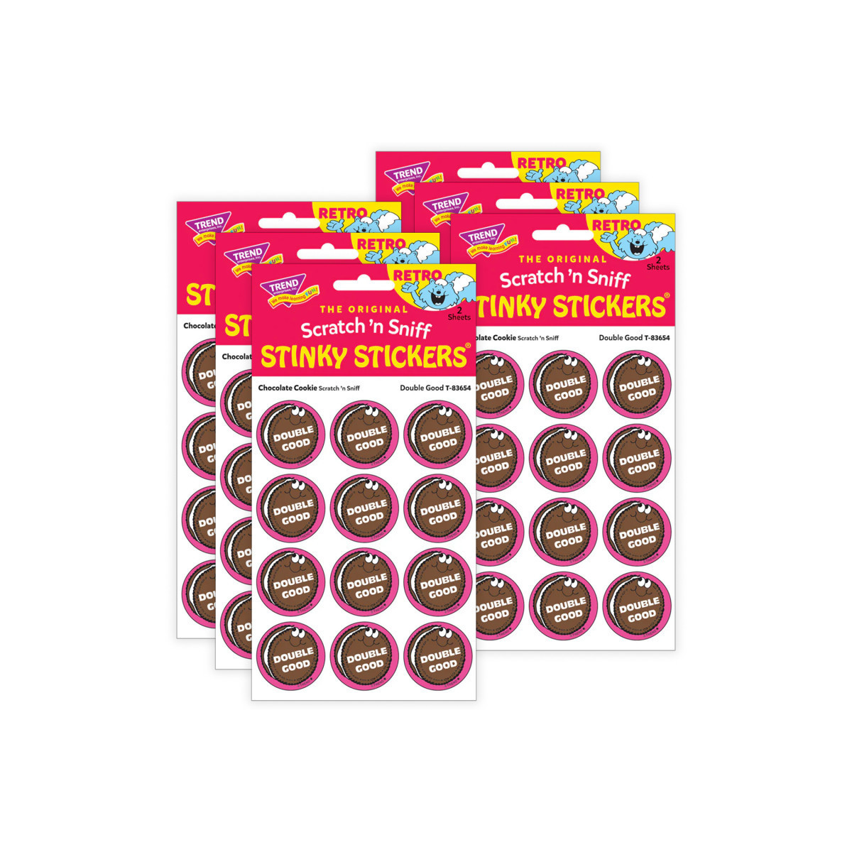 Get a whiff of this Double Good, chocolate cookie-scented sticker! TREND Scratch n Sniff Stinky Stickers from the 80s are BACK! Fun to collect, trade, and celebrate accomplishments and special occasions. Collectors will be happy to spot the star symbol to distinguish TREND Retro Stinky Stickers from those printed in the 1980s. Sold as 6 packs.