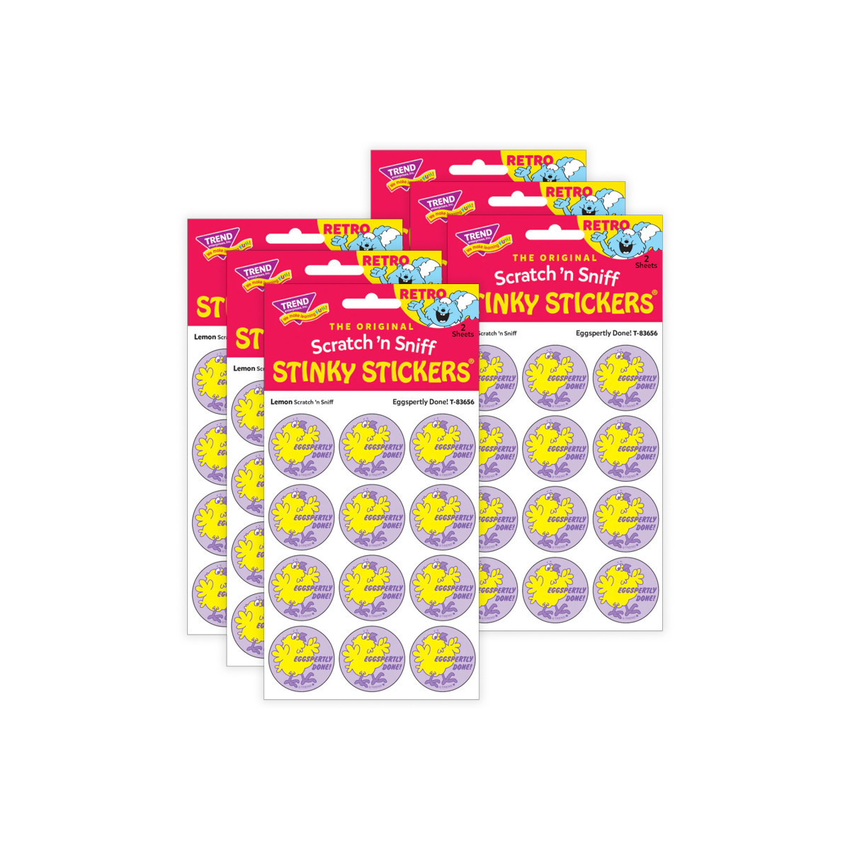 Get a whiff of this Eggspertly Done, lemon-scented chick sticker! TREND Scratch n Sniff Stinky Stickers from the 80s are BACK! Fun to collect, trade, and celebrate accomplishments and special occasions. Collectors will be happy to spot the star symbol to distinguish TREND Retro Stinky Stickers from those printed in the 1980s. Sold as 6 packs.
