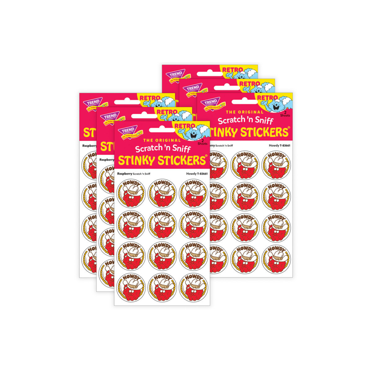Get a whiff of this Howdy, raspberry-scented sticker! TREND Scratch 'n Sniff Stinky Stickers from the '80s are BACK! Fun to collect, trade, and celebrate accomplishments and special occasions. Collectors will be happy to spot the star symbol to distinguish TREND Retro Stinky Stickers from those printed in the 1980s. Sold as 6 packs.