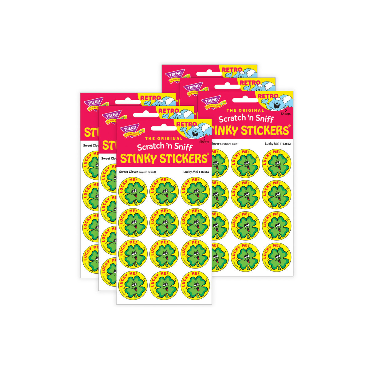 Get a whiff of this Lucky Me, sweet clover-scented four-leaf clover sticker! TREND Scratch n Sniff Stinky Stickers from the 80s are BACK! Fun to collect, trade, and celebrate accomplishments and special occasions. Collectors will be happy to spot the star symbol to distinguish TREND Retro Stinky Stickers from those printed in the 1980s. Sold as 6 packs.