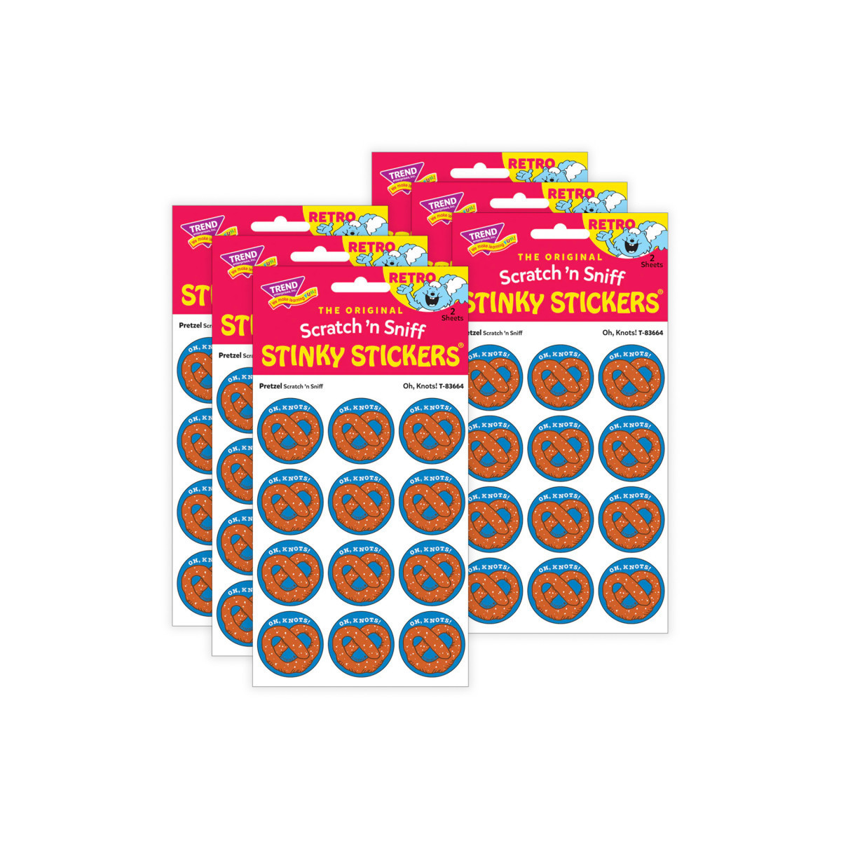 Get a whiff of this Oh, Knots!, pretzel-scented sticker! TREND Scratch 'n Sniff Stinky Stickers from the '80s are BACK! Fun to collect, trade, and celebrate accomplishments and special occasions. Collectors will be happy to spot the star symbol to distinguish TREND Retro Stinky Stickers from those printed in the 1980s. Sold as 6 packs.