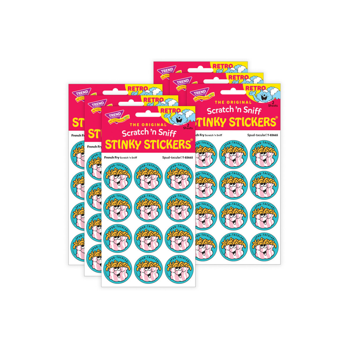 Get a whiff of this Spud-tacular!, french fry-scented sticker! TREND Scratch n Sniff Stinky Stickers from the 80s are BACK! Fun to collect, trade, and celebrate accomplishments and special occasions. Collectors will be happy to spot the star symbol to distinguish TREND Retro Stinky Stickers from those printed in the 1980s. Sold as 6 packs.