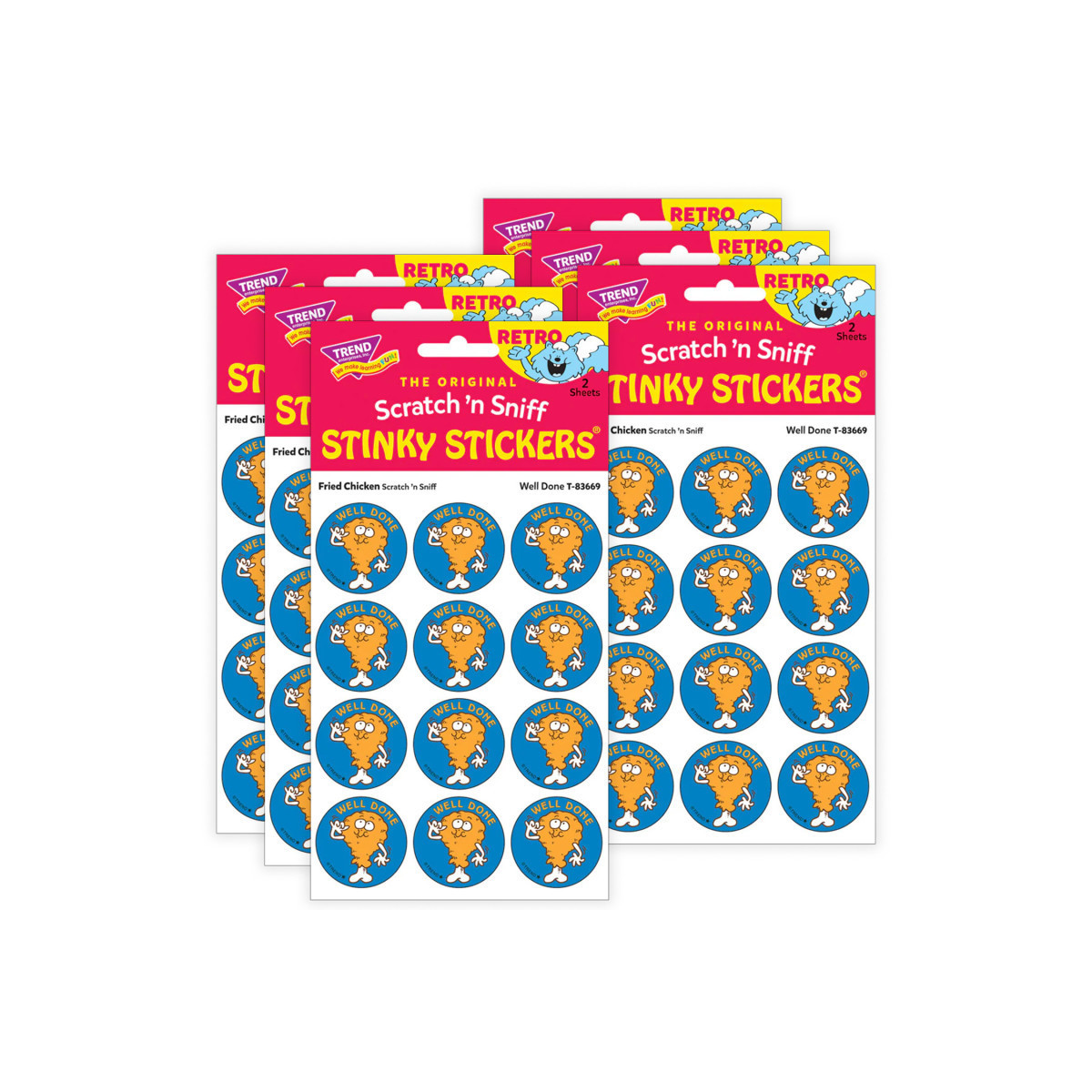 Get a whiff of this Well Done, fried chicken-scented sticker! TREND Scratch n Sniff Stinky Stickers from the '80s are BACK! Fun to collect, trade, and celebrate accomplishments and special occasions. Collectors will be happy to spot the star symbol to distinguish TREND Retro Stinky Stickers from those printed in the 1980s. Sold as 6 packs.