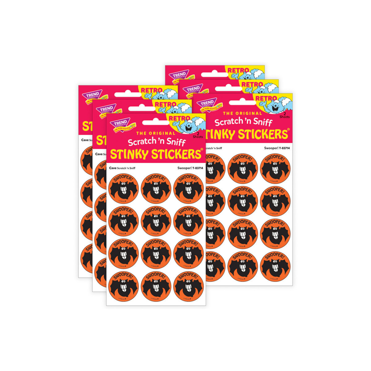 Get a whiff of this Swooper!, cave-scented bat sticker! TREND Scratch 'n Sniff Stinky Stickers from the 80s are BACK! Fun to collect, trade, and celebrate accomplishments and special occasions. Collectors will be happy to spot the star symbol to distinguish TREND Retro Stinky Stickers from those printed in the 1980s. Sold as 6 packs.