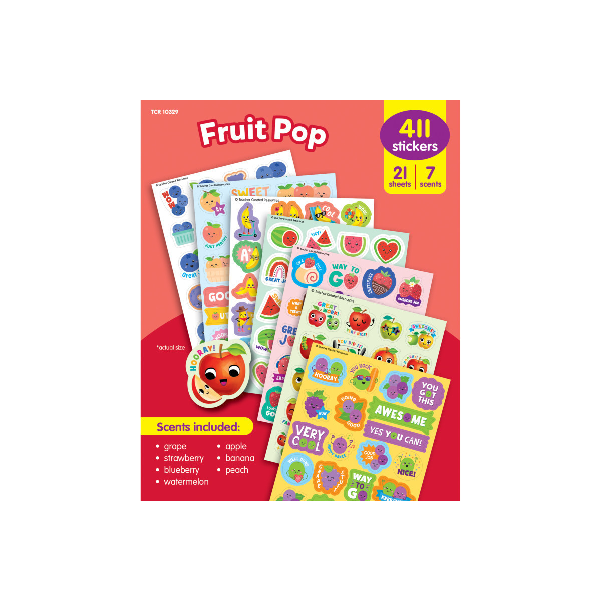 INCLUDES 411 SMELLY STICKERS: Bring a fruity fragrance to school rewards with these smelly stickers. Pack includes 411 total stickers in 7 scents: grape, strawberry, blueberry, watermelon, apple, banana, and peach. Sticker measurements vary from about 2-1/4" to 5/8".