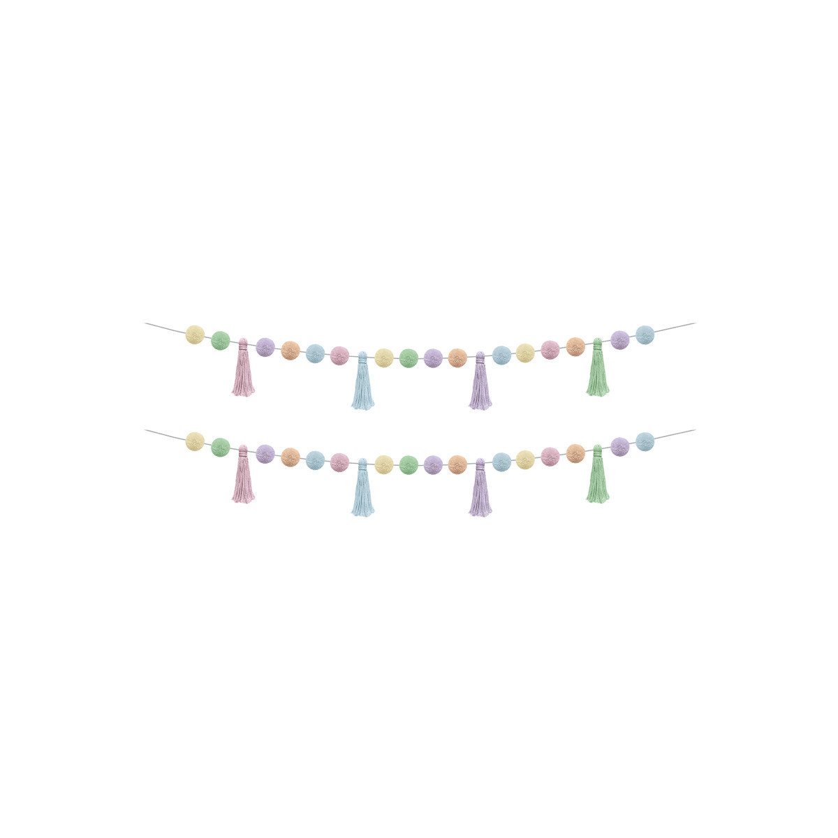 Add a pop of color and fun to any room with our pom-poms and tassels garland! This festive garland measures 60 inches in length and features 4 tassels and 16 pom-poms. The pom-poms are approximately 1-1/2" in diameter, while the tassels are approximately 5" in length. Perfect for decorating your home, classroom, or any special occasion, this garland is sure to bring a smile to everyone's face. Brighten up your space today with this playful and vibrant garland! Sold as a pack of 2.