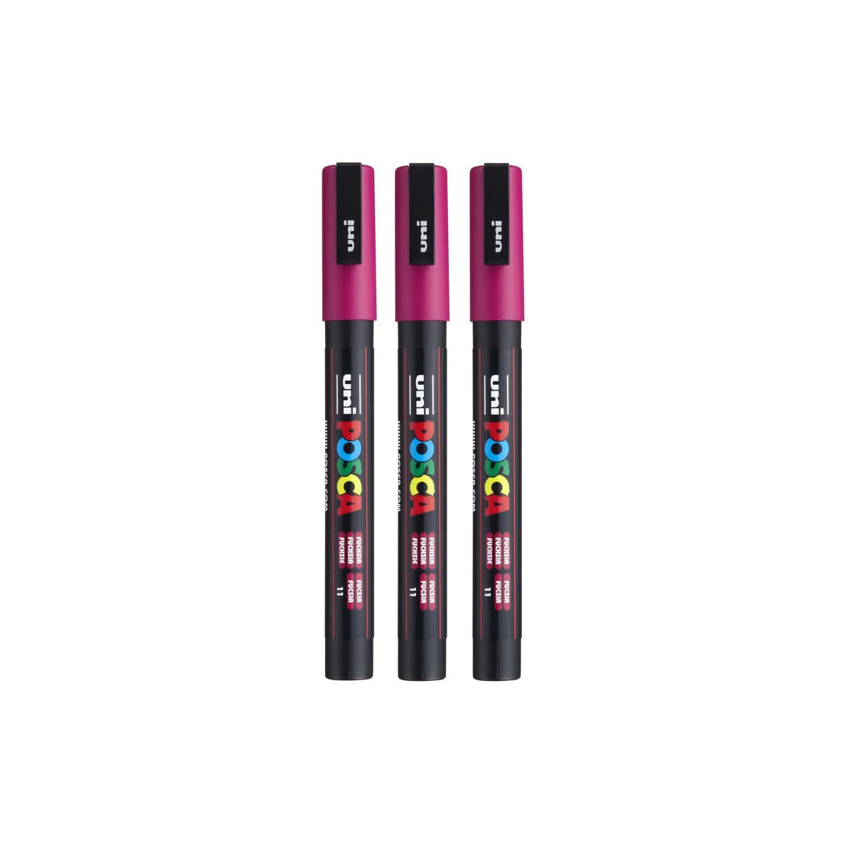 Achieve smooth, precise lines with the POSCA PC-3M Paint Marker, Fine Bullet Tip (0.9–1.3 mm), Fuchsia. This versatile marker size is perfect for controlled outlining, drawing, lettering, coloring, and detailed embellishment across a wide range of creative projects. The water-based, opaque paint delivers vivid, matte coverage on paper, canvas, wood, plastic, metal, glass, ceramic, stone, and fabric, making it one of the most popular multi-surface markers used by students, artists, and makers. The fine bullet tip provides consistent, clean strokes with excellent control, ideal for both small-scale artwork and refined mixed-media work. Colors dry quickly, layer smoothly, and resist smudging or bleed-through. With a valve-controlled ink system for even paint flow and highly pigmented paint that remains vibrant over time, POSCA PC-3M markers are the go-to choice for detail-rich creative expression on any surface. Sold as a pack of 3.