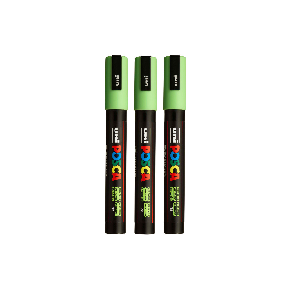 Create bold, vibrant artwork with the POSCA PC-5M Paint Marker, Reversible Medium Bullet Tip (1.8–2.5 mm), Apple Green. This versatile paint marker is designed for smooth, even coverage on a wide range of surfaces, including paper, canvas, wood, metal, plastic, glass, ceramic, fabric, and stone. The medium bullet tip offers excellent control and flexibility, fine enough for outlining and lettering, yet broad enough for coloring, shading, and larger areas. The highly opaque, water-based paint applies cleanly, dries quickly to a matte finish, and resists smudging, bleeding, and fading. POSCA’s reversible tip can be removed, flipped, or replaced to extend the life of each marker. Ideal for illustration, mixed media, journaling, craft projects, customization, and classroom use, the PC-5M marker is one of POSCA’s most popular sizes for artists and students who need reliable, multi-surface performance. Sold as a pack of 3.