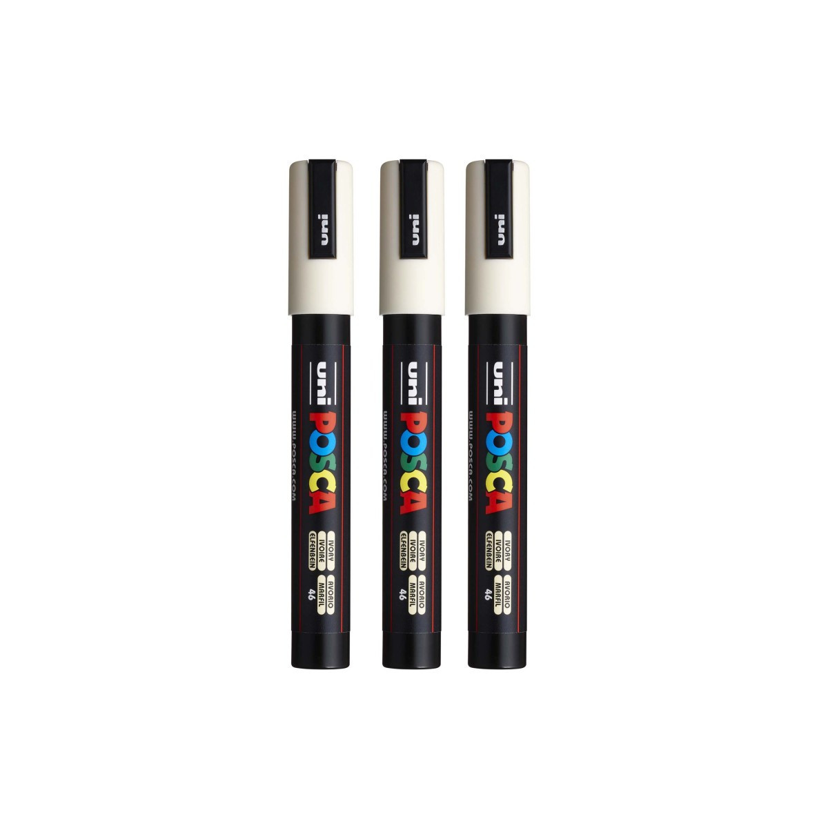 Create bold, vibrant artwork with the POSCA PC-5M Paint Marker, Reversible Medium Bullet Tip (1.8–2.5 mm), Ivory. This versatile paint marker is designed for smooth, even coverage on a wide range of surfaces, including paper, canvas, wood, metal, plastic, glass, ceramic, fabric, and stone. The medium bullet tip offers excellent control and flexibility, fine enough for outlining and lettering, yet broad enough for coloring, shading, and larger areas. The highly opaque, water-based paint applies cleanly, dries quickly to a matte finish, and resists smudging, bleeding, and fading. POSCA’s reversible tip can be removed, flipped, or replaced to extend the life of each marker. Ideal for illustration, mixed media, journaling, craft projects, customization, and classroom use, the PC-5M marker is one of POSCA’s most popular sizes for artists and students who need reliable, multi-surface performance. Sold as a pack of 3.