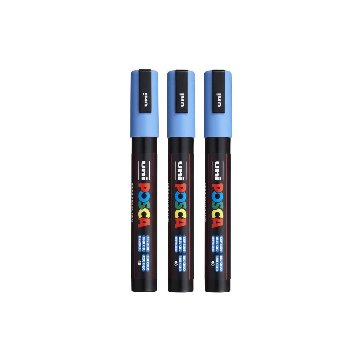 Create bold, vibrant artwork with the POSCA PC-5M Paint Marker, Reversible Medium Bullet Tip (1.8–2.5 mm), Sky Blue. This versatile paint marker is designed for smooth, even coverage on a wide range of surfaces, including paper, canvas, wood, metal, plastic, glass, ceramic, fabric, and stone. The medium bullet tip offers excellent control and flexibility, fine enough for outlining and lettering, yet broad enough for coloring, shading, and larger areas. The highly opaque, water-based paint applies cleanly, dries quickly to a matte finish, and resists smudging, bleeding, and fading. POSCA’s reversible tip can be removed, flipped, or replaced to extend the life of each marker. Ideal for illustration, mixed media, journaling, craft projects, customization, and classroom use, the PC-5M marker is one of POSCA’s most popular sizes for artists and students who need reliable, multi-surface performance. Sold as a pack of 3.