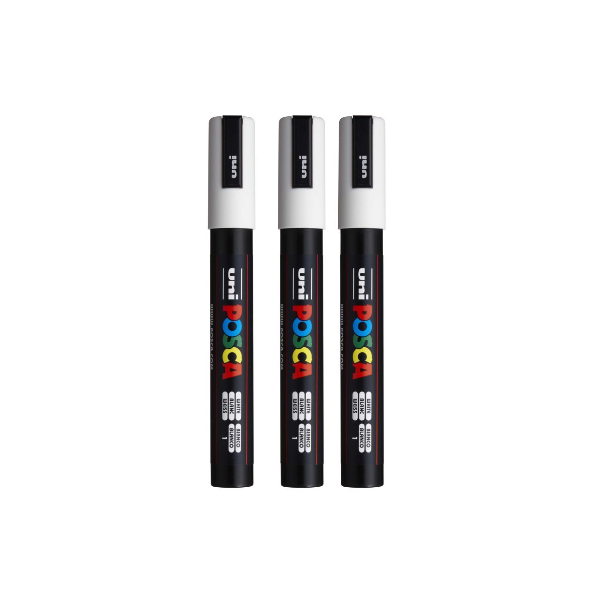 Create bold, vibrant artwork with the POSCA PC-5M Paint Marker, Reversible Medium Bullet Tip (1.8–2.5 mm), White. This versatile paint marker is designed for smooth, even coverage on a wide range of surfaces, including paper, canvas, wood, metal, plastic, glass, ceramic, fabric, and stone. The medium bullet tip offers excellent control and flexibility, fine enough for outlining and lettering, yet broad enough for coloring, shading, and larger areas. The highly opaque, water-based paint applies cleanly, dries quickly to a matte finish, and resists smudging, bleeding, and fading. POSCA’s reversible tip can be removed, flipped, or replaced to extend the life of each marker. Ideal for illustration, mixed media, journaling, craft projects, customization, and classroom use, the PC-5M marker is one of POSCA’s most popular sizes for artists and students who need reliable, multi-surface performance. Sold as a pack of 3.