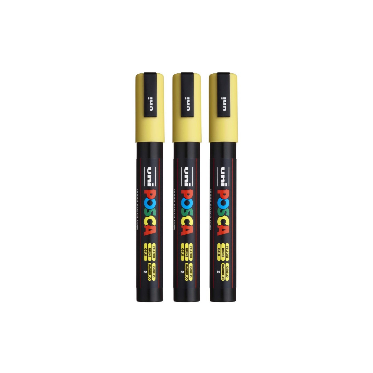 Create bold, vibrant artwork with the POSCA PC-5M Paint Marker, Reversible Medium Bullet Tip (1.8–2.5 mm) Yellow. This versatile paint marker is designed for smooth, even coverage on a wide range of surfaces, including paper, canvas, wood, metal, plastic, glass, ceramic, fabric, and stone. The medium bullet tip offers excellent control and flexibility, fine enough for outlining and lettering, yet broad enough for coloring, shading, and larger areas. The highly opaque, water-based paint applies cleanly, dries quickly to a matte finish, and resists smudging, bleeding, and fading. POSCA’s reversible tip can be removed, flipped, or replaced to extend the life of each marker. Ideal for illustration, mixed media, journaling, craft projects, customization, and classroom use, the PC-5M marker is one of POSCA’s most popular sizes for artists and students who need reliable, multi-surface performance. Sold as a pack of 3.