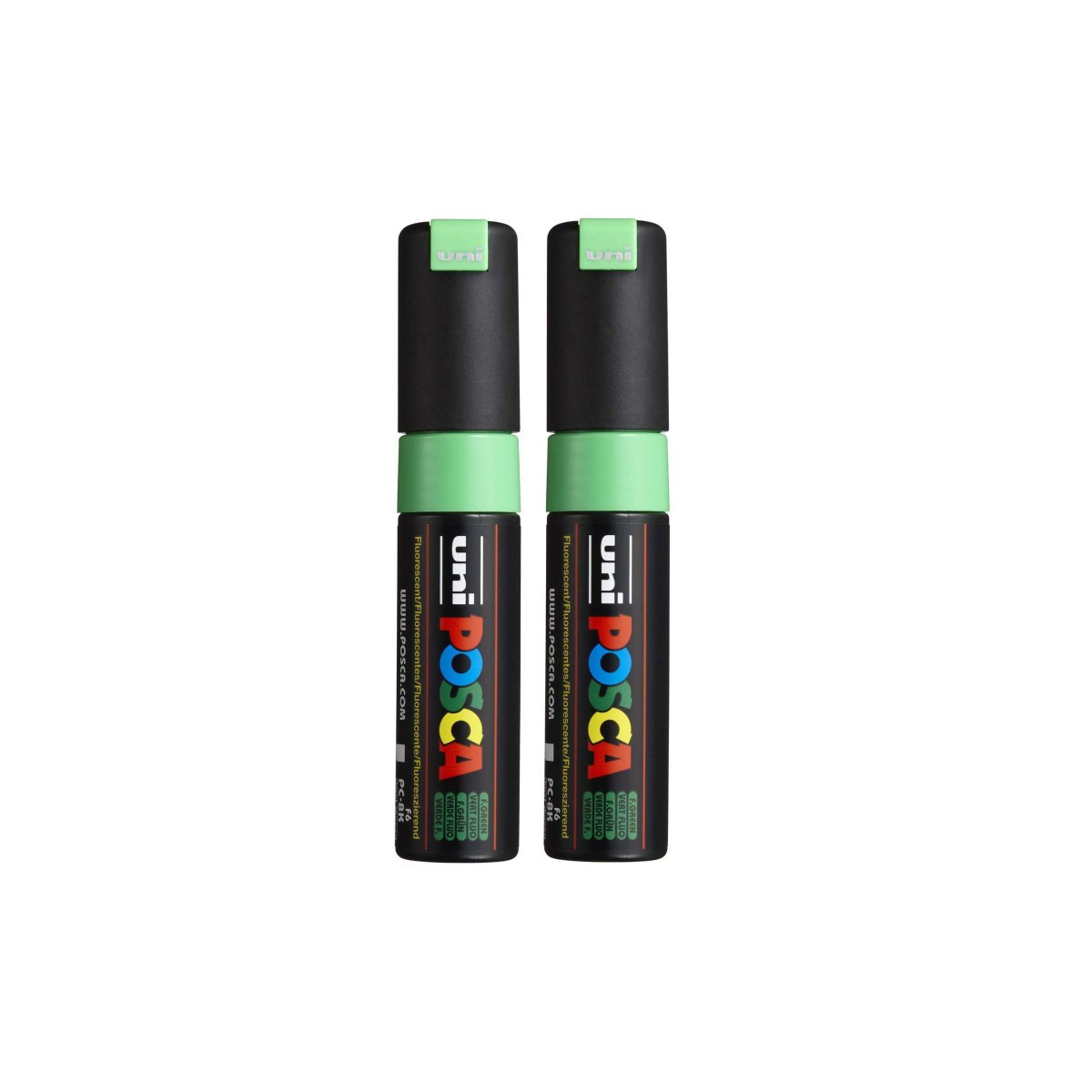 Create bold, high-impact marks with the POSCA PC-8K Paint Markers, Broad Chisel Tip (8 mm), Fluorescent Green. Designed for large-scale artwork, lettering, murals, and expressive mixed-media applications, these markers deliver rich, opaque color on nearly any surface, including paper, canvas, wood, plastic, metal, glass, stone, ceramic, and fabric. The 8 mm chisel tip provides dynamic line variation, offering both wide coverage and sharp, clean edges, making it ideal for posters, signage, backgrounds, and graphic illustration. POSCA’s water-based, quick-drying paint applies smoothly, dries to a matte finish, and resists smudging and fading. The valve-controlled ink system ensures consistent paint flow, and the durable tip can be reversed or replaced for extended use. Whether in the studio, classroom, or creative workspace, PC-8K markers offer reliable, vibrant performance for artists who want bold strokes and confident color. Sold as a pack of 2.