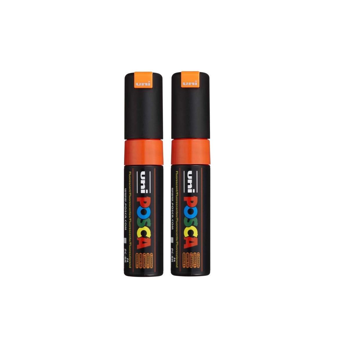 Create bold, high-impact marks with the POSCA PC-8K Paint Markers, Broad Chisel Tip (8 mm), Fluorescent Orange. Designed for large-scale artwork, lettering, murals, and expressive mixed-media applications, these markers deliver rich, opaque color on nearly any surface, including paper, canvas, wood, plastic, metal, glass, stone, ceramic, and fabric. The 8 mm chisel tip provides dynamic line variation, offering both wide coverage and sharp, clean edges, making it ideal for posters, signage, backgrounds, and graphic illustration. POSCA’s water-based, quick-drying paint applies smoothly, dries to a matte finish, and resists smudging and fading. The valve-controlled ink system ensures consistent paint flow, and the durable tip can be reversed or replaced for extended use.